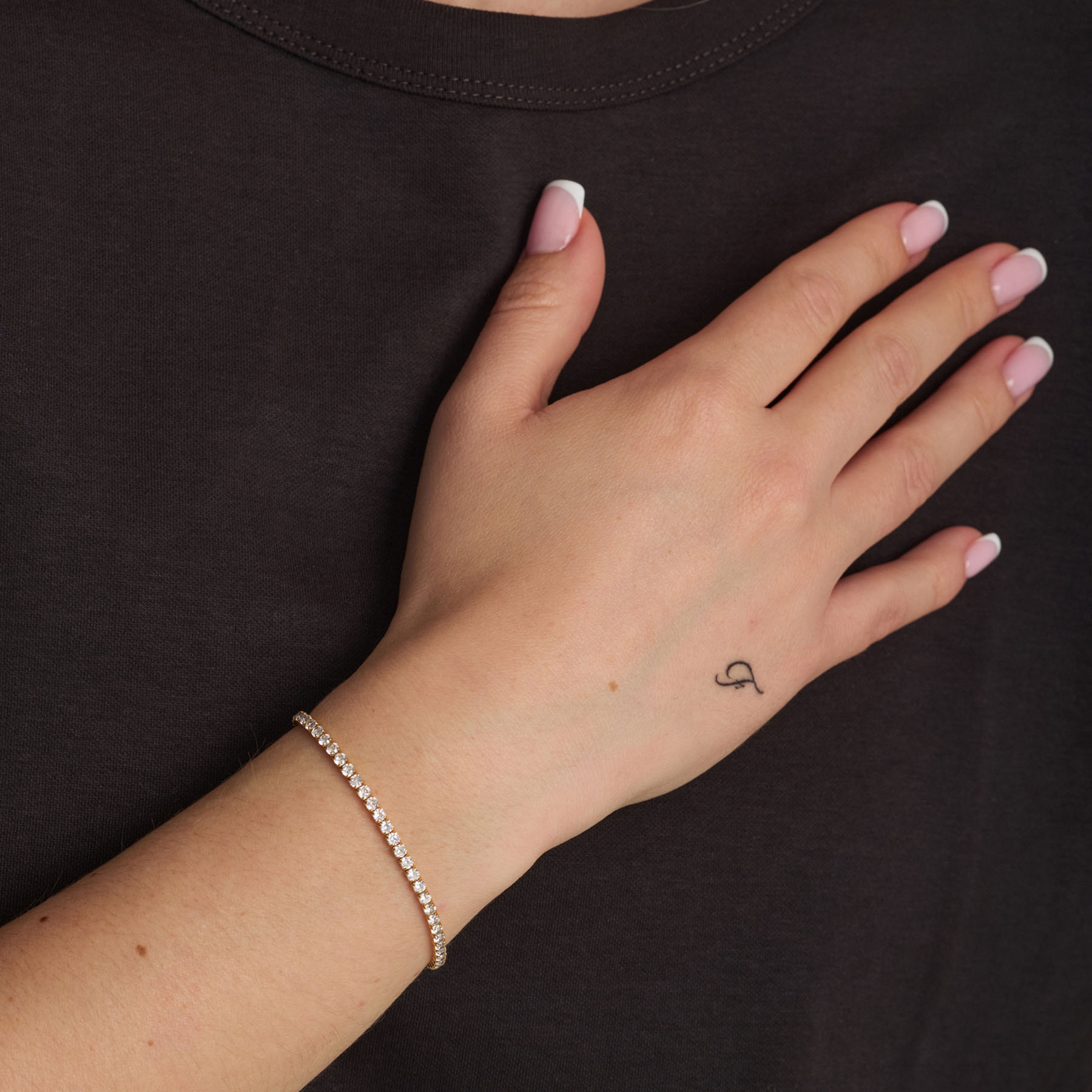 Med en justerbar længde på 16-21 cm kan armbåndet tilpasses præcist efter din præference, hvilket sikrer en komfortabel pasform. Dette gør det ikke kun til et stilfuldt valg, men også til et alsidigt smykke, der kan bæres til både hverdag og festlige anledninger. Studio Zs tennisarmbånd er en perfekt gaveidé til dem, der sætter pris på elegant smykkedesign og håndværk i høj kvalitet.