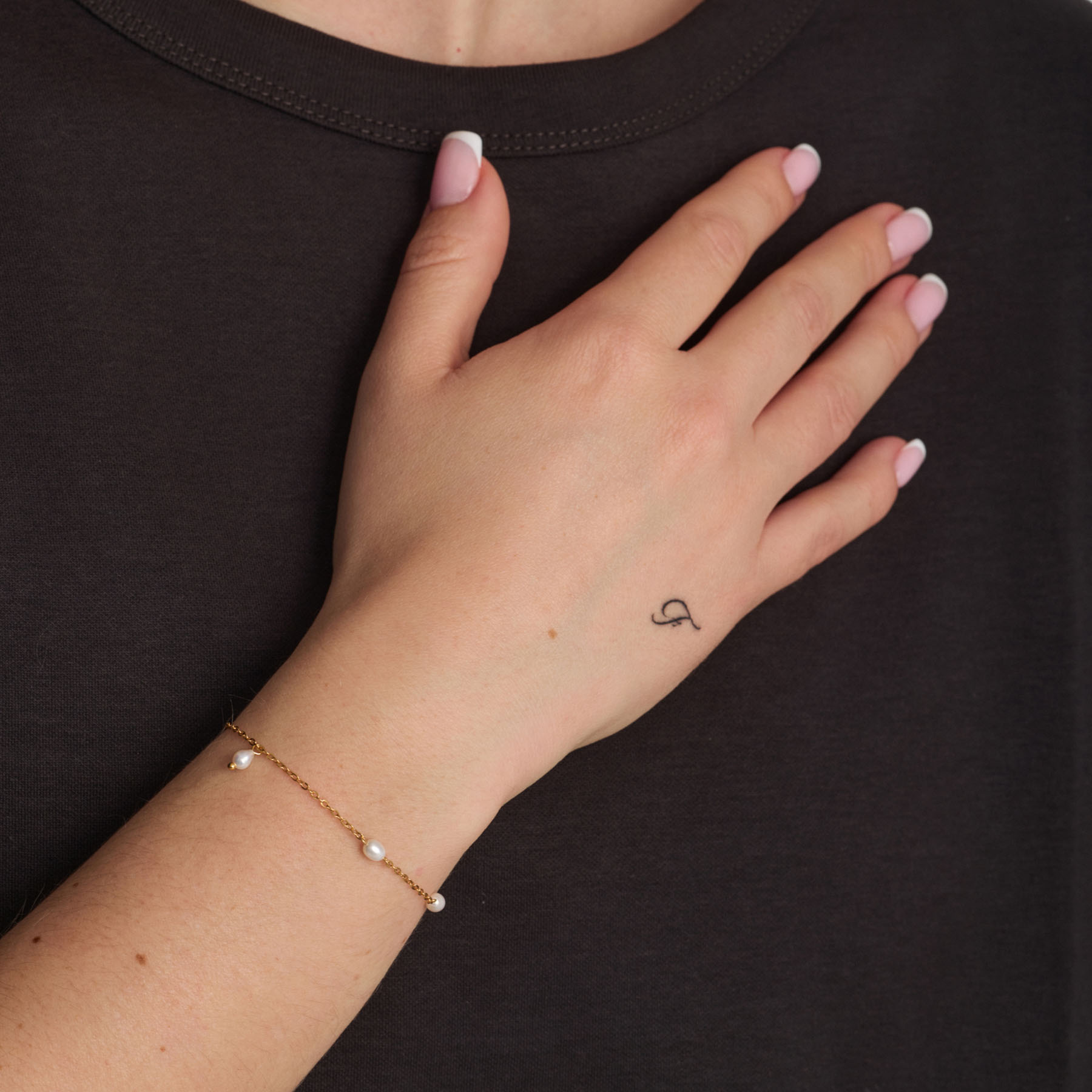 Oplev elegance og stil med dette Trace armbånd fra Studio Z, der kombinerer klassisk design med moderne detaljer. Armbåndet er fremstillet i forgyldt sterlingsølv, hvilket giver det et luksuriøst udtryk, der passer perfekt til enhver lejlighed. Den delikate, tynde kæde prydes af tre små perler, der tilføjer et subtilt, men sofistikeret touch til dit look.