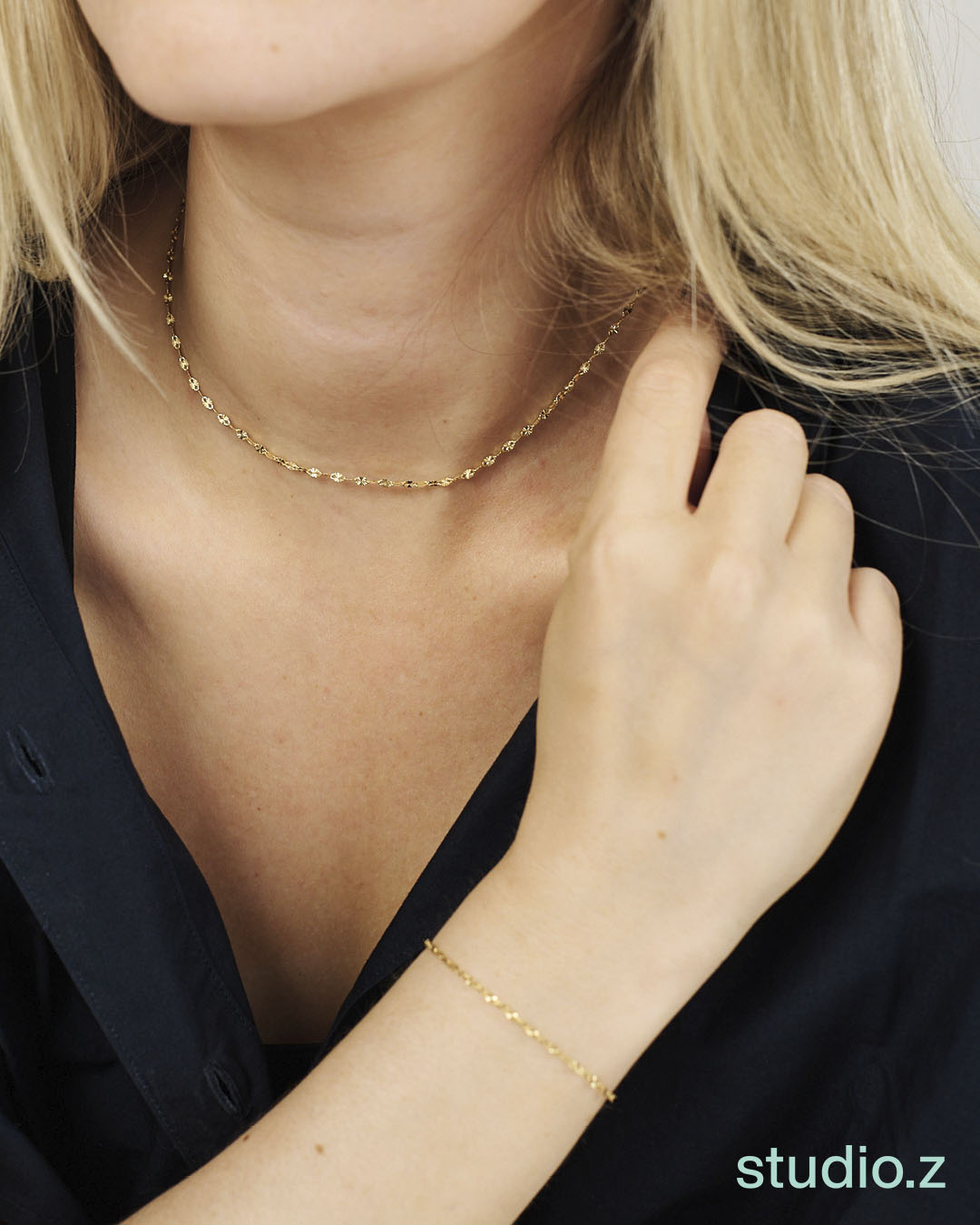 Designet med små, ovale led med en unik tekstur, skaber halskæden et interessant visuelt element, der gør den til et iøjnefaldende tilbehør. Den justerbare længde fra 40 til 45 cm sørger for, at du kan tilpasse pasformen efter dine præferencer, hvilket gør det muligt at bære halskæden alene eller i kombination med andre smykker for et mere lagdelt udtryk. Aurelia halskæden fra Studio Z er en ideel gave til dig selv eller en du holder af, og den perfekte måde at tilføje lidt luksus til hverdagens eller festlige anledninger.