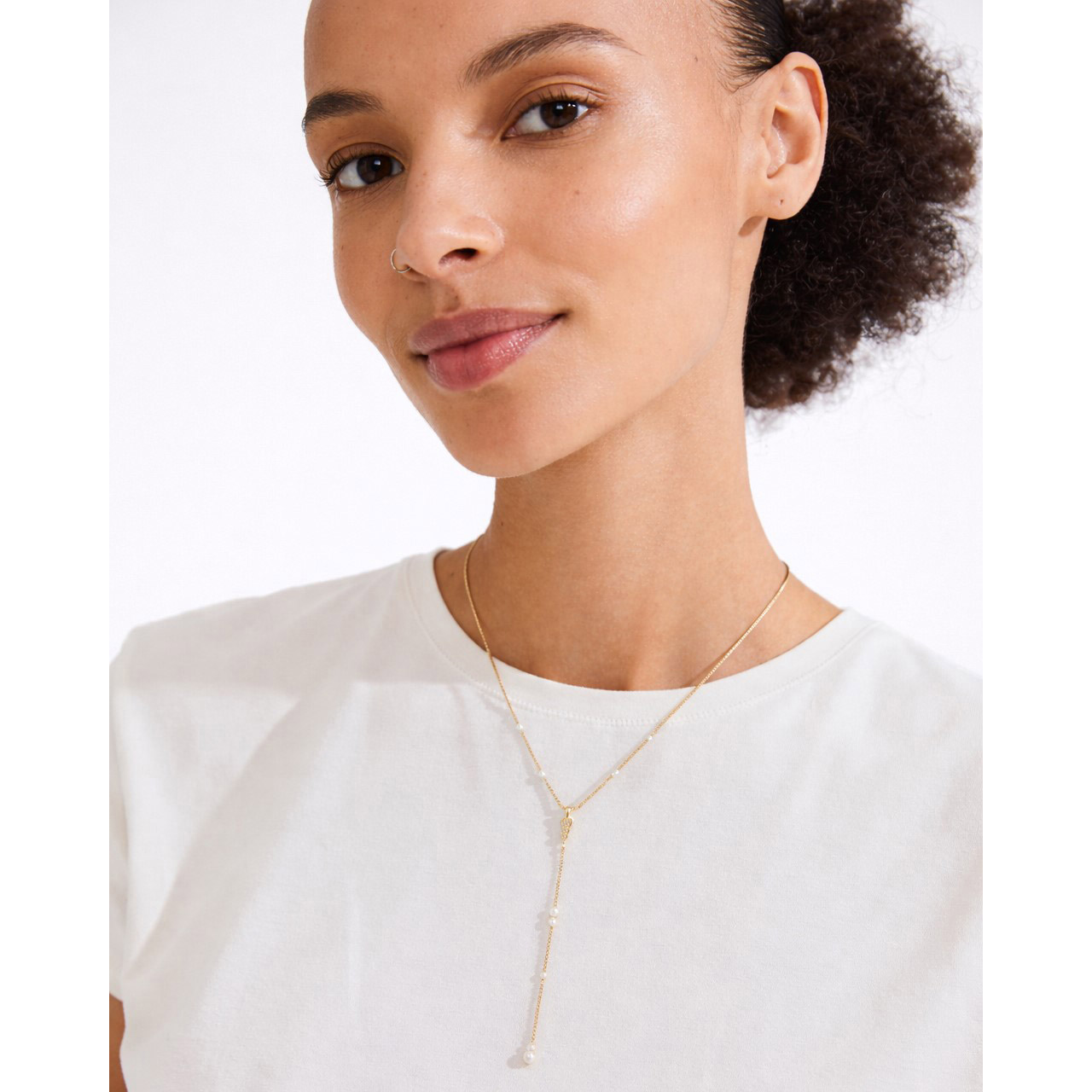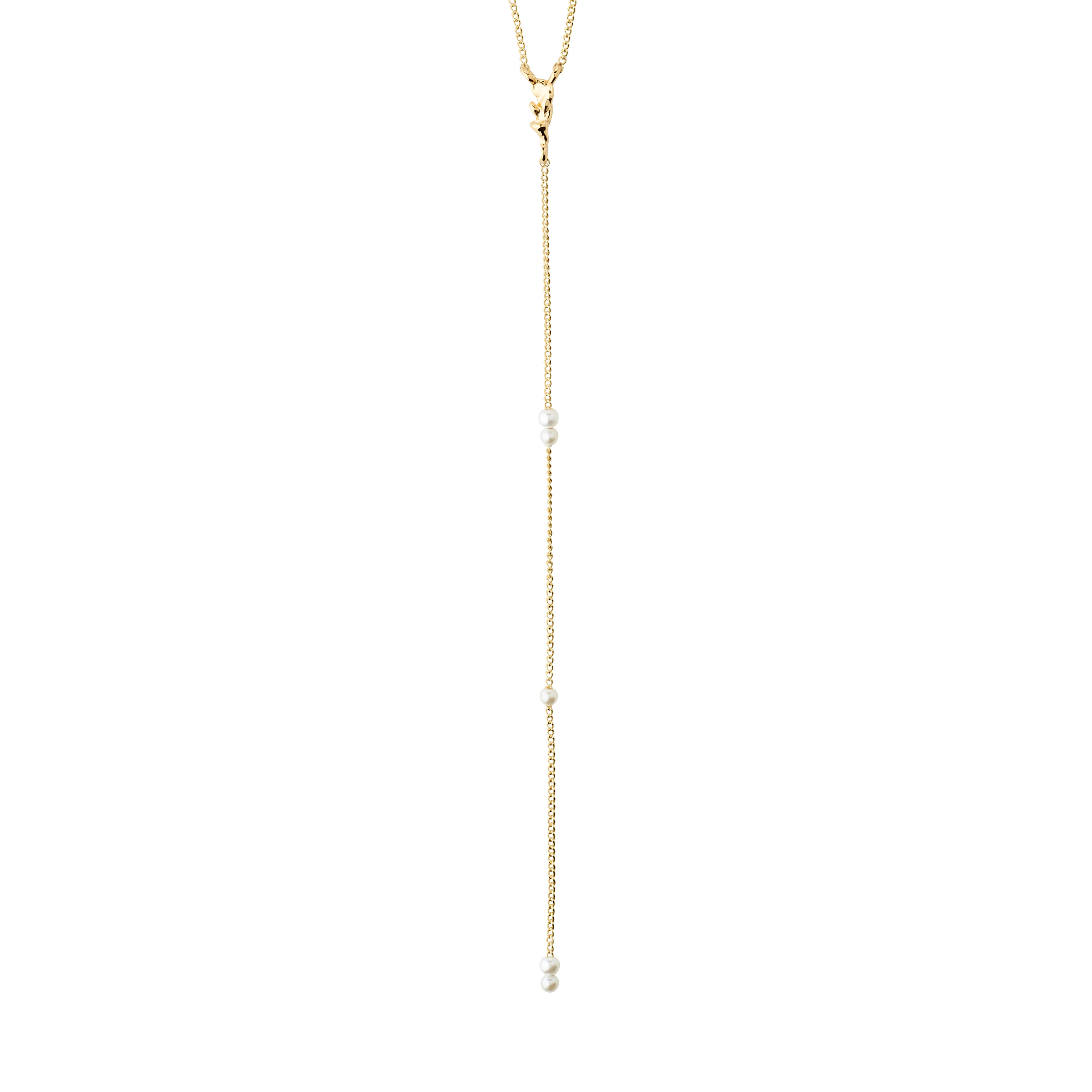 Designet som en Y-halskæde, er den udsmykket med små delikate perler, der elegant følger halsens linjer og skaber en subtil, men iøjnefaldende effekt. Med en længde på 44 cm plus en ekstra forlængelse på 9 cm, kan denne halskæde justeres til at passe perfekt til forskellige halsudskæringer og personlige præferencer.