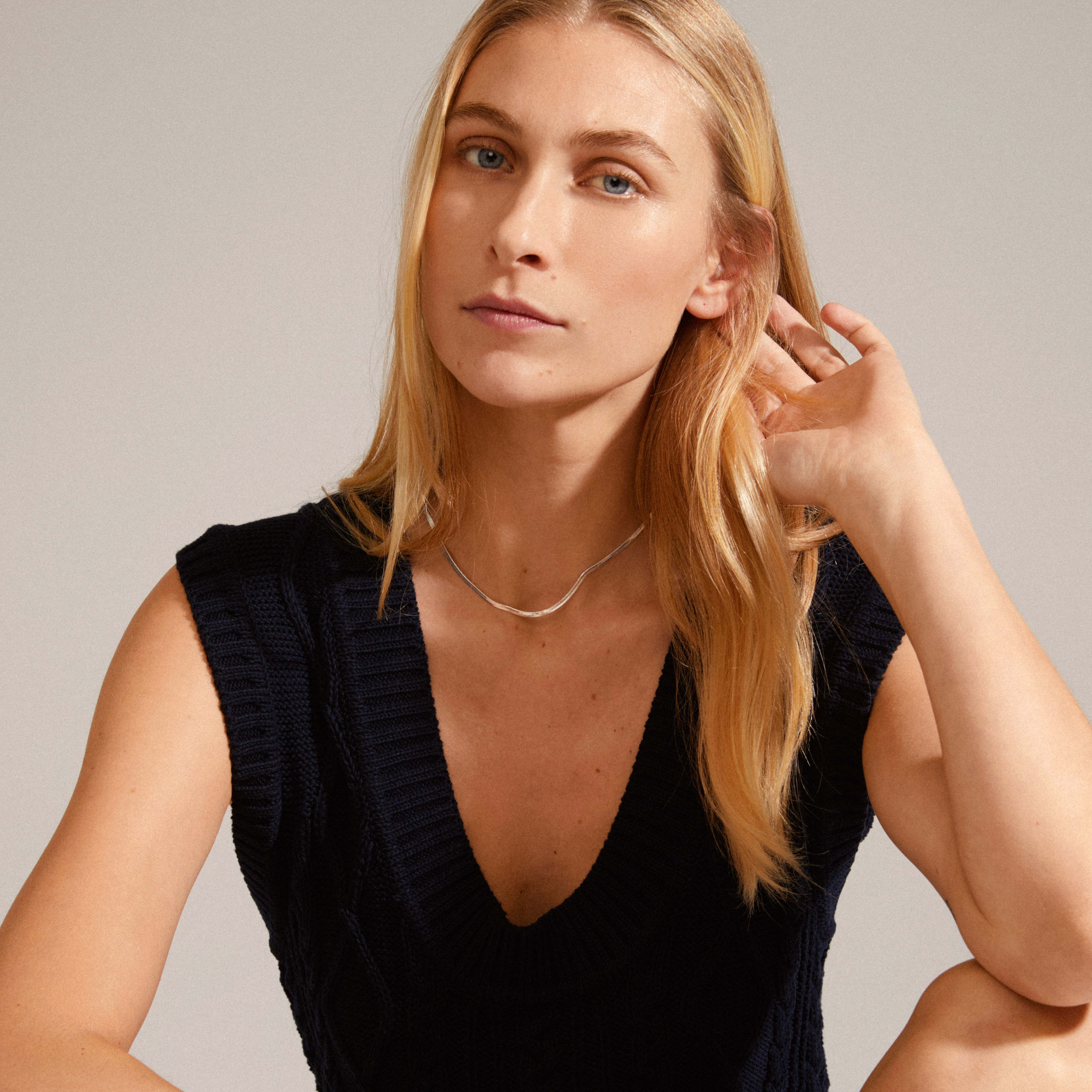 Joanna Flat Snake Chain Halskæde, Sølv, 40 cm