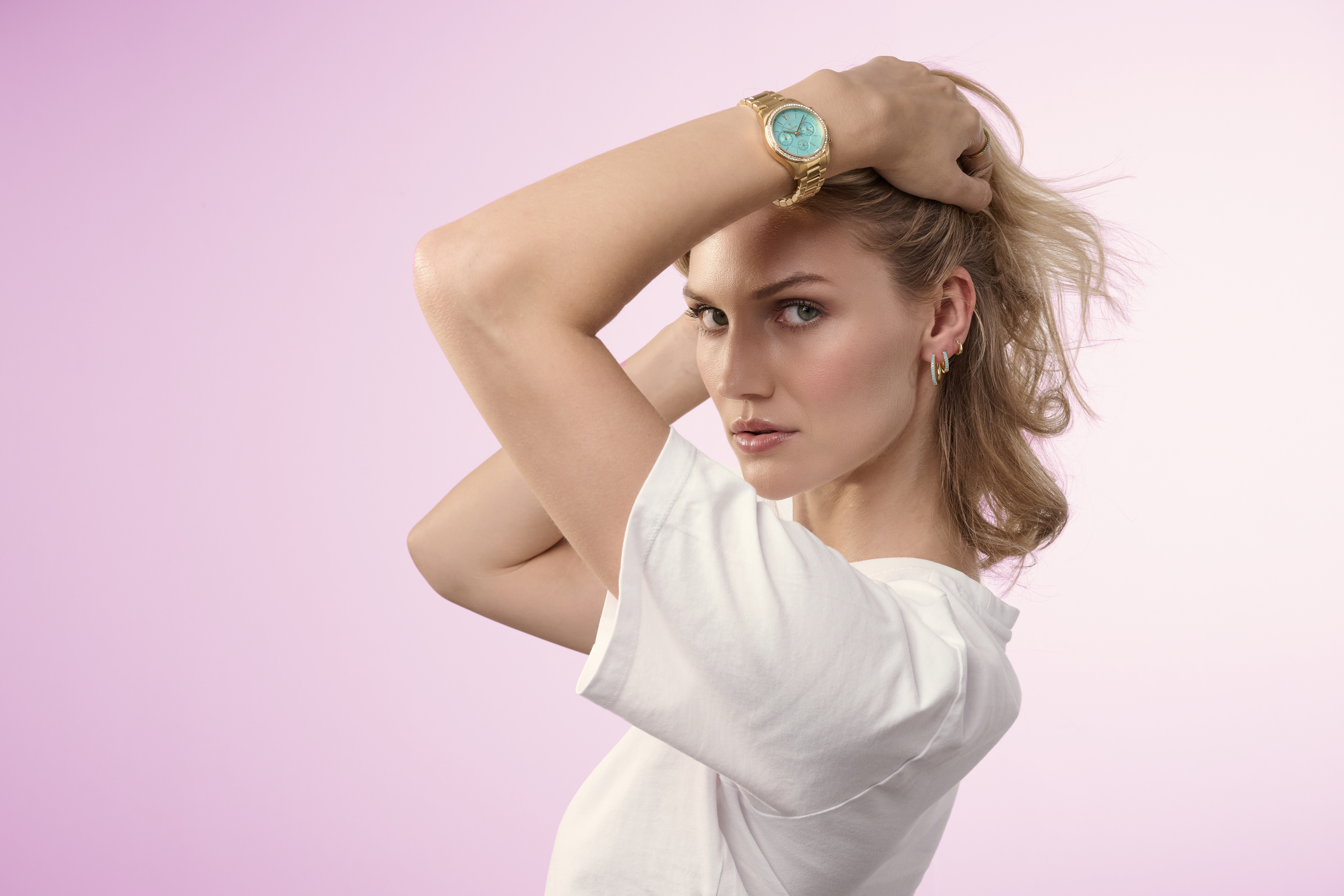 Ellera Medio Øreringe, Guld/Turkis