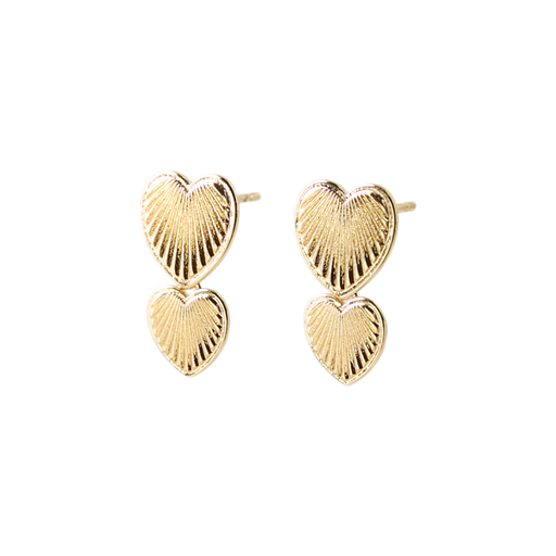 Heart Double Øreringe, Gold Plated Brass