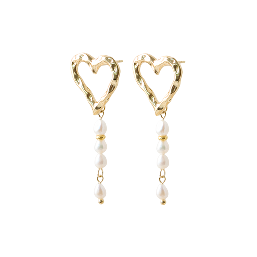 Heart Pearl Large Øreringe, Gold Plated