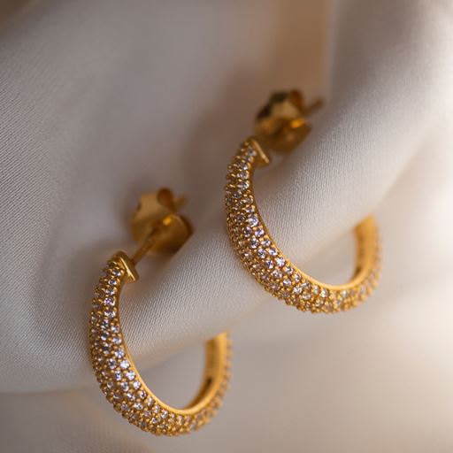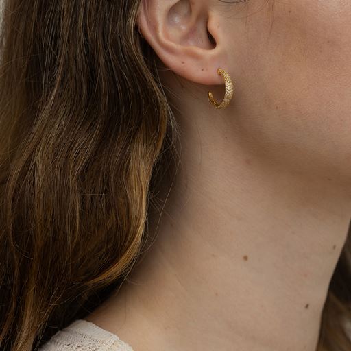 Ocean Flow Sparkle Medium Øreringe, Gold Plated
