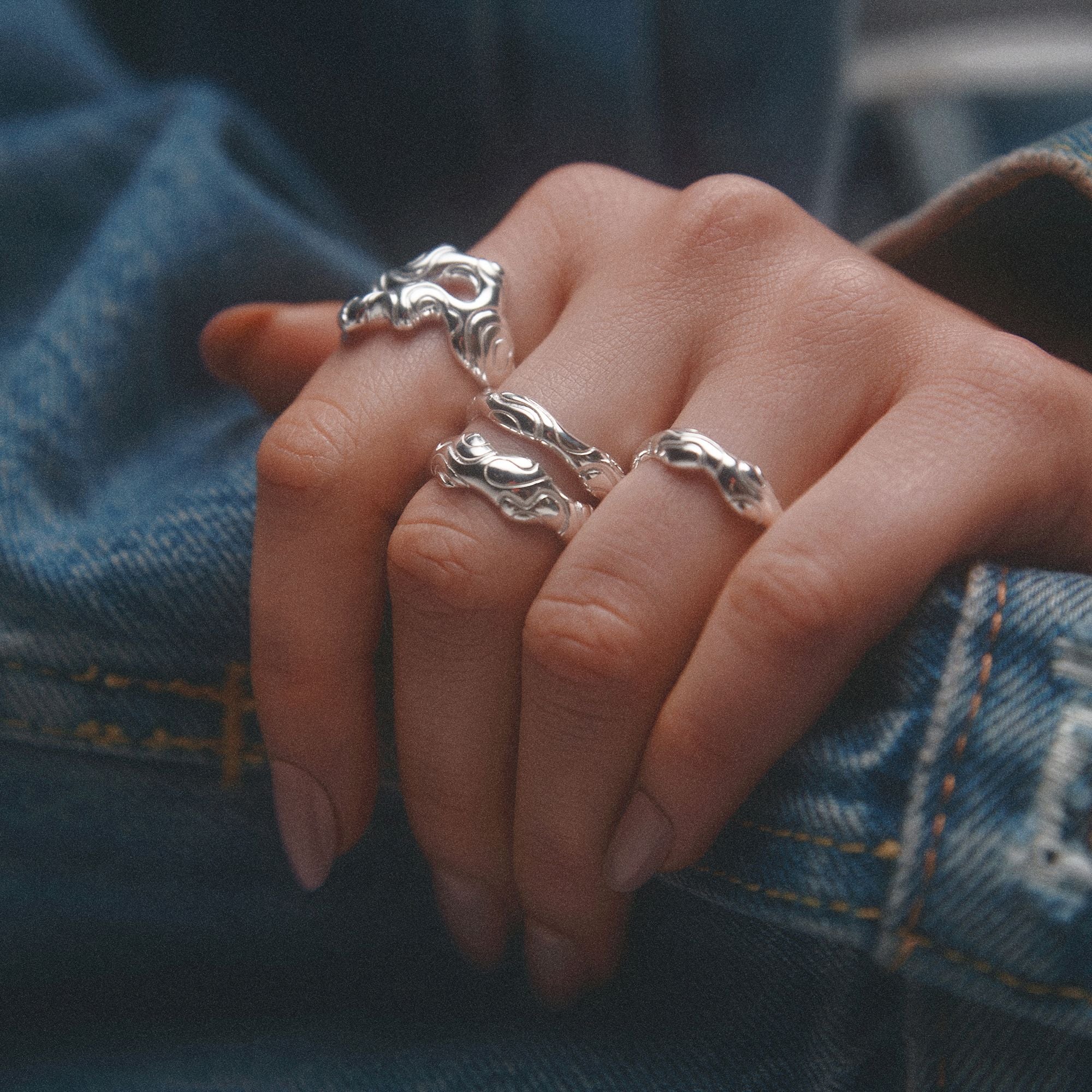 Small Bubbly Flow Ring, Silver, 56