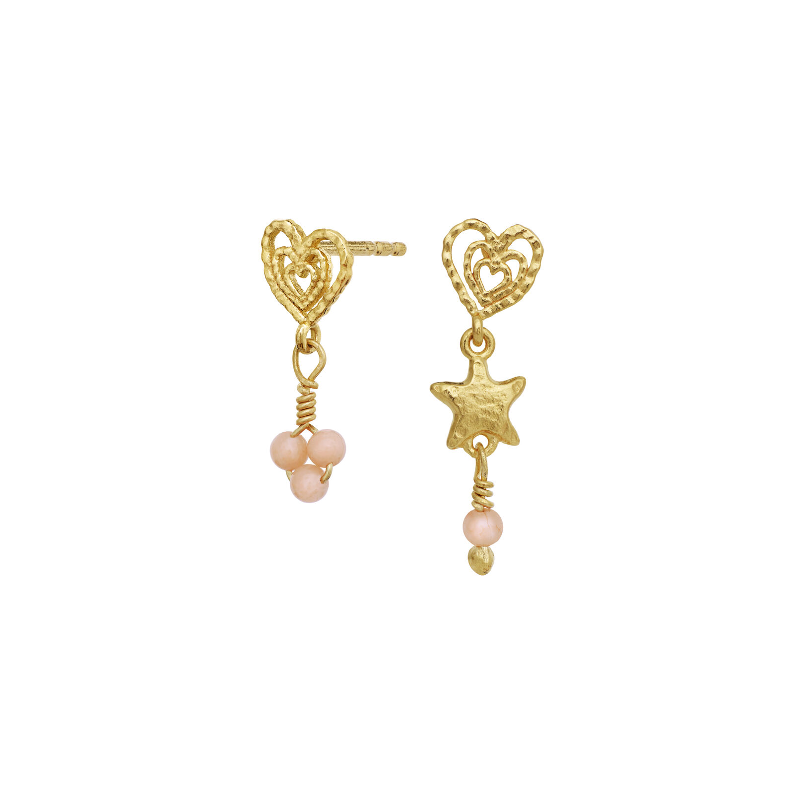 Det charmerende design inkluderer både hjerter og stjerner, hvilket bidrager til et legende og romantisk udtryk, perfekt til at fremhæve din personlige stil. Øreringene er designet som et asymmetrisk par, hvilket gør dem til et iøjnefaldende valg, der skiller sig ud fra mere traditionelle smykker. Med en længde på 20 mm er de passende til både hverdag og festlige lejligheder, og de vil helt sikkert tiltrække beundrende blikke. Vibe Øreringe er den ideelle tilføjelse til enhver smykkesamling, der søger efter noget unikt og stilfuldt.