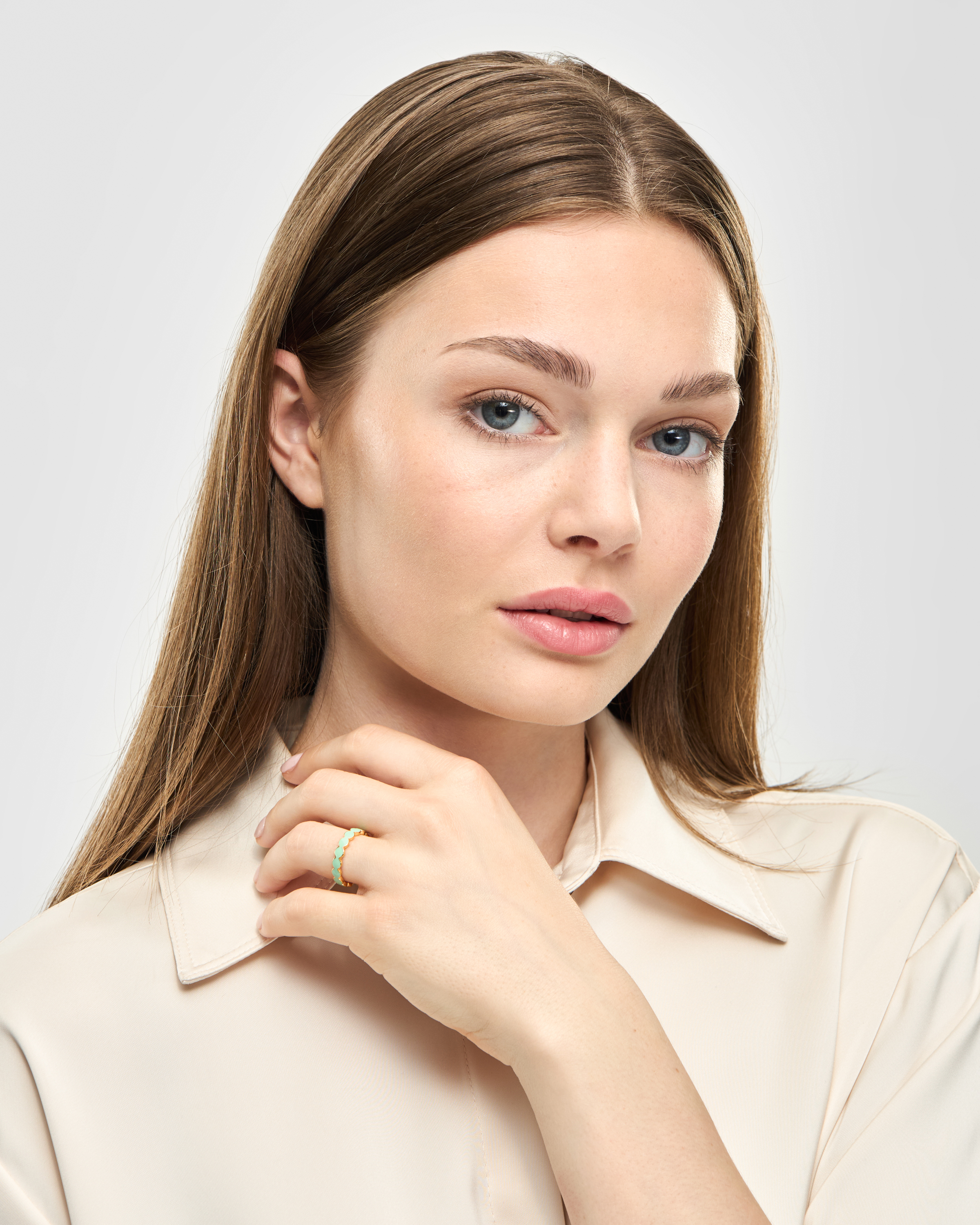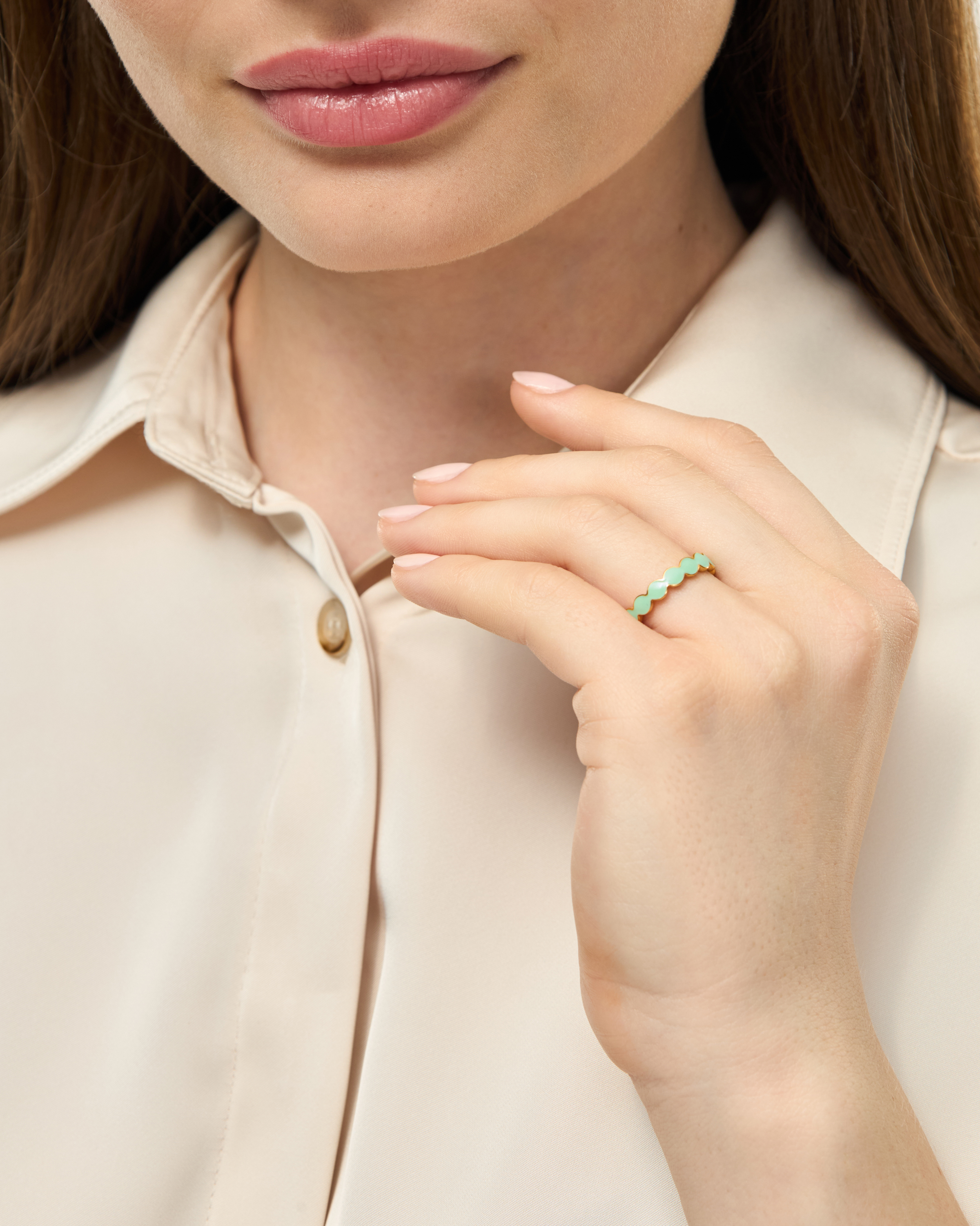 Connected Circles Ring, Seasalt Green, 52