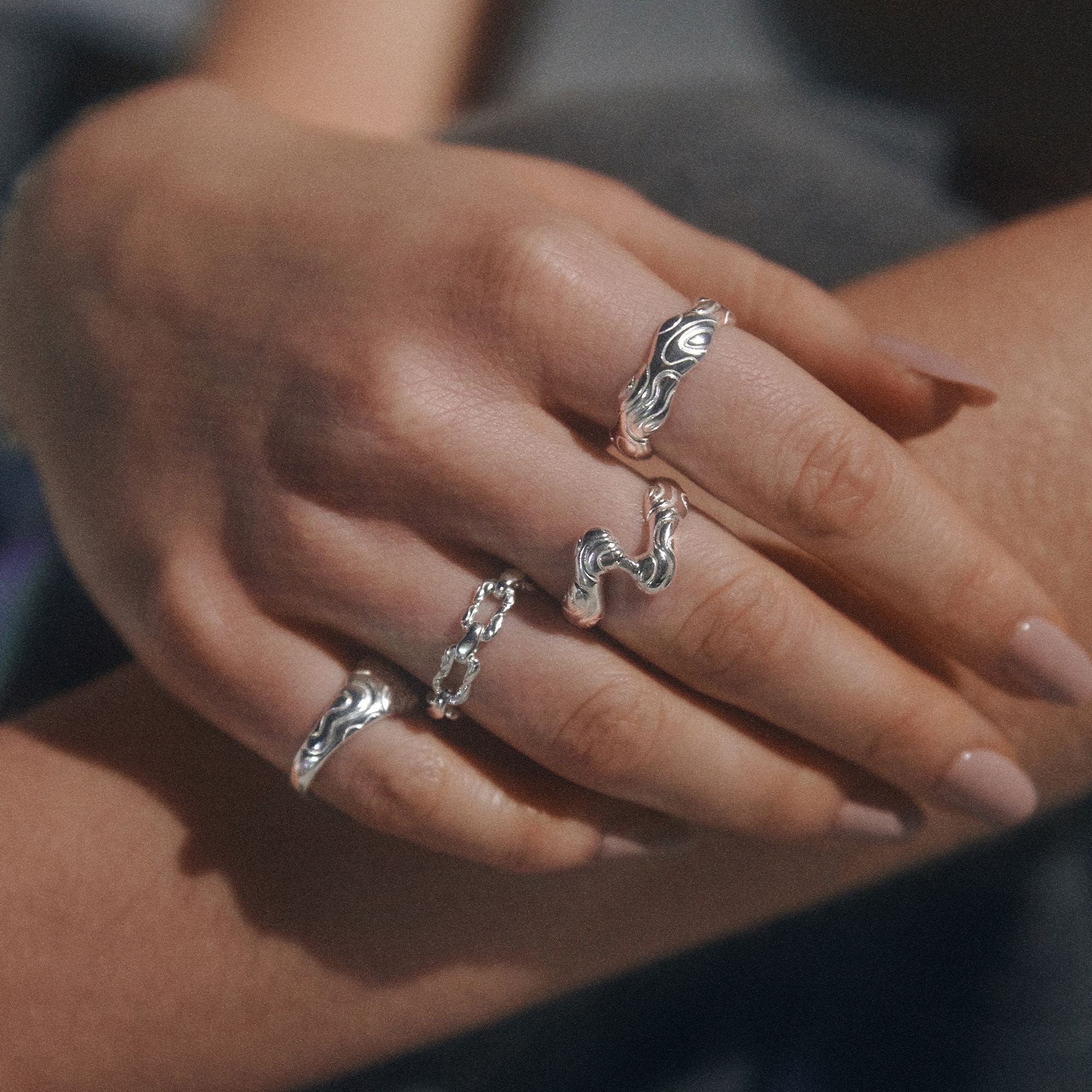 Large Bubbly Flow Ring, Silver, 56
