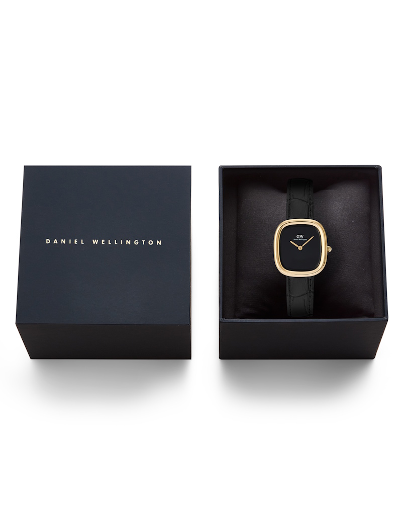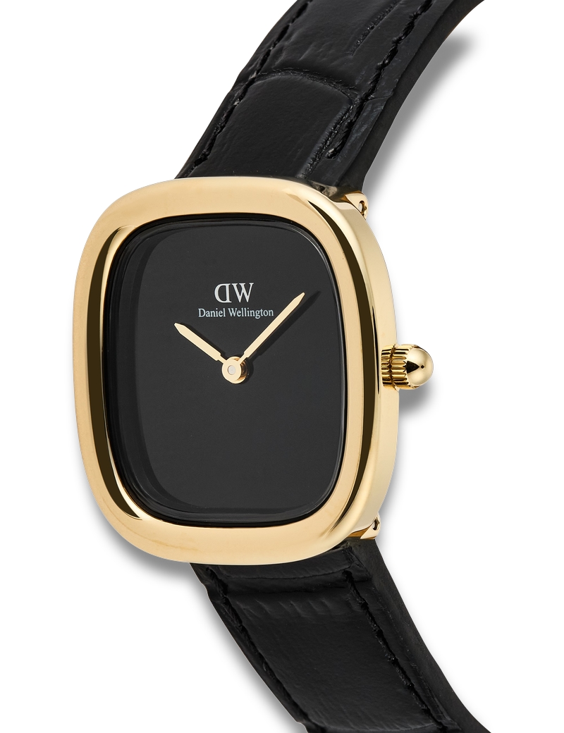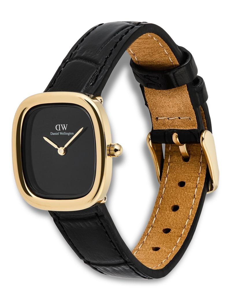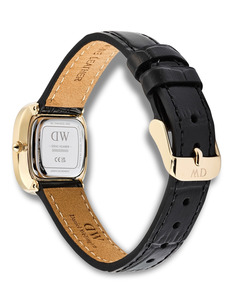Margot ADW00100880 dameuret fra Daniel Wellington er et elegant tilbehør, der kombinerer tidløs stil med moderne design. Dette smukke dameur er fremstillet af guldbelagt rustfrit stål, hvilket giver det et luksuriøst udseende, der passer til enhver lejlighed. Den sorte læderrem tilføjer en sofistikeret kontrast til det gyldne urhus, hvilket gør det til en perfekt accessory til både hverdag og fest.