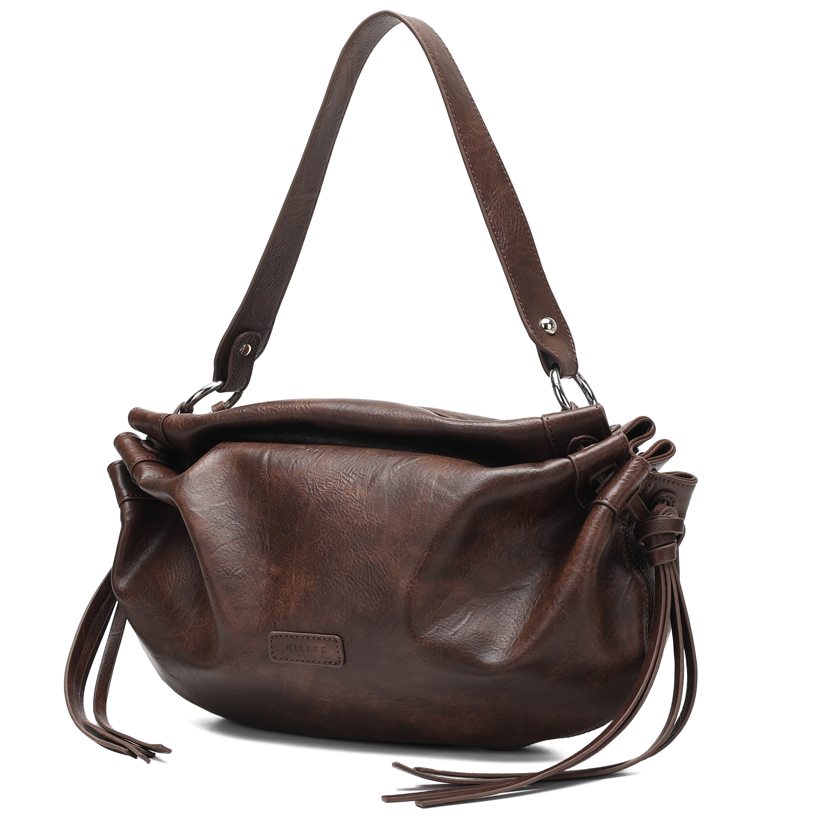 Taskens front er udsmykket med bløde folder, der tilføjer et elegant touch til designet, mens frynserne i siderne giver et unikt og trendy look. Med en justerbar strop kan du tilpasse tasken efter dine præferencer, så den sidder komfortabelt på skulderen. Iris Skuldertaske måler H:18, B:40, D:16 cm, hvilket gør den ideel til både hverdag og særlige anledninger. Tasken er lavet i PU, hvilket sikrer en holdbar og nem at vedligeholde overflade, som samtidig er stilfuld. Med Iris Skuldertaske fra Silfen får du en kombination af praktisk opbevaring og moderne design, der passer til enhver garderobe.