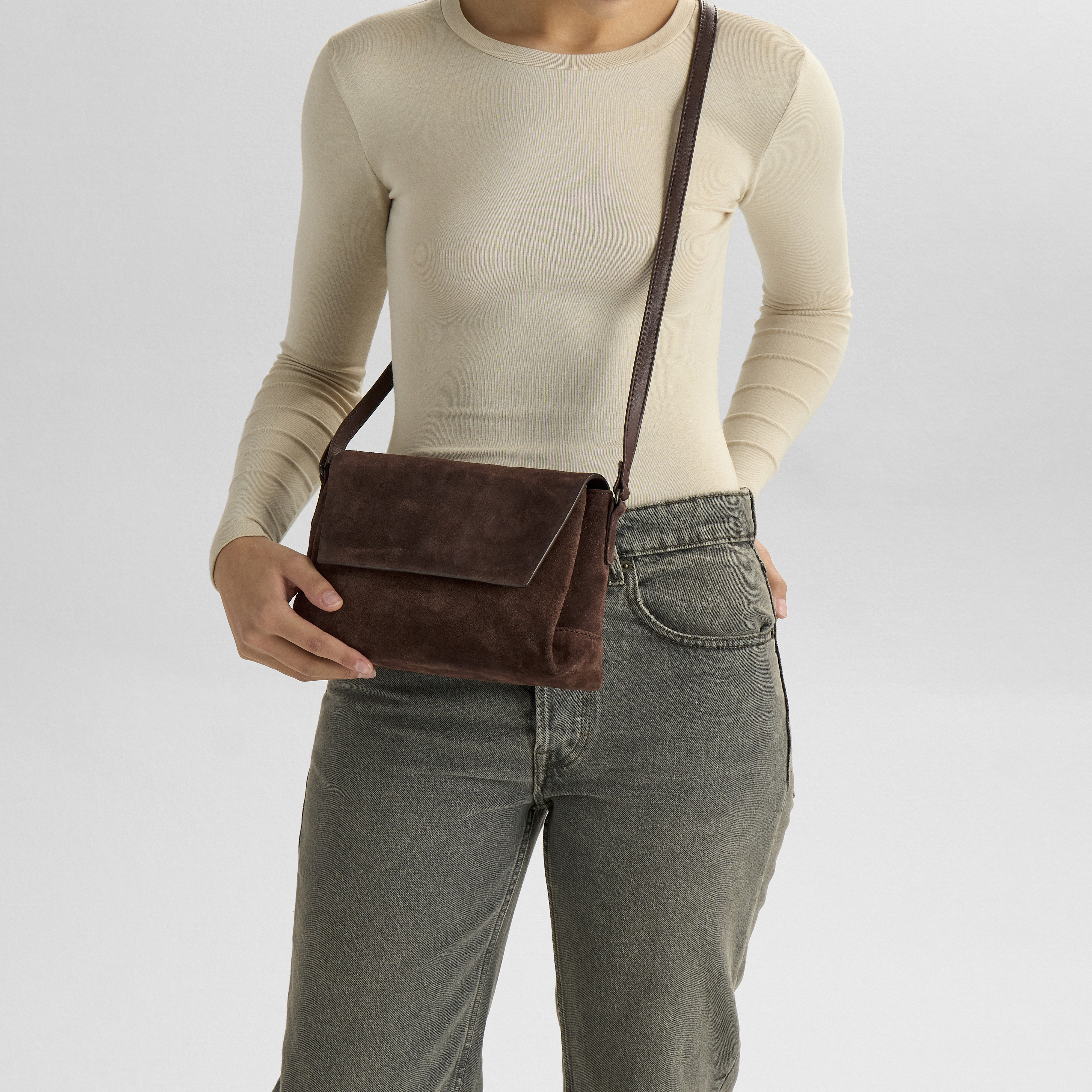 Jules Crossbody Tasken er fremstillet af ko ruskind, hvilket tilføjer et sofistikeret og luksuriøst touch til dit outfit. Denne taske fra Markberg er det ideelle valg for dem, der søger både funktionalitet og stil i deres tilbehør.