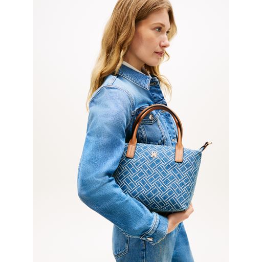- Struktur i denim med monogramprint