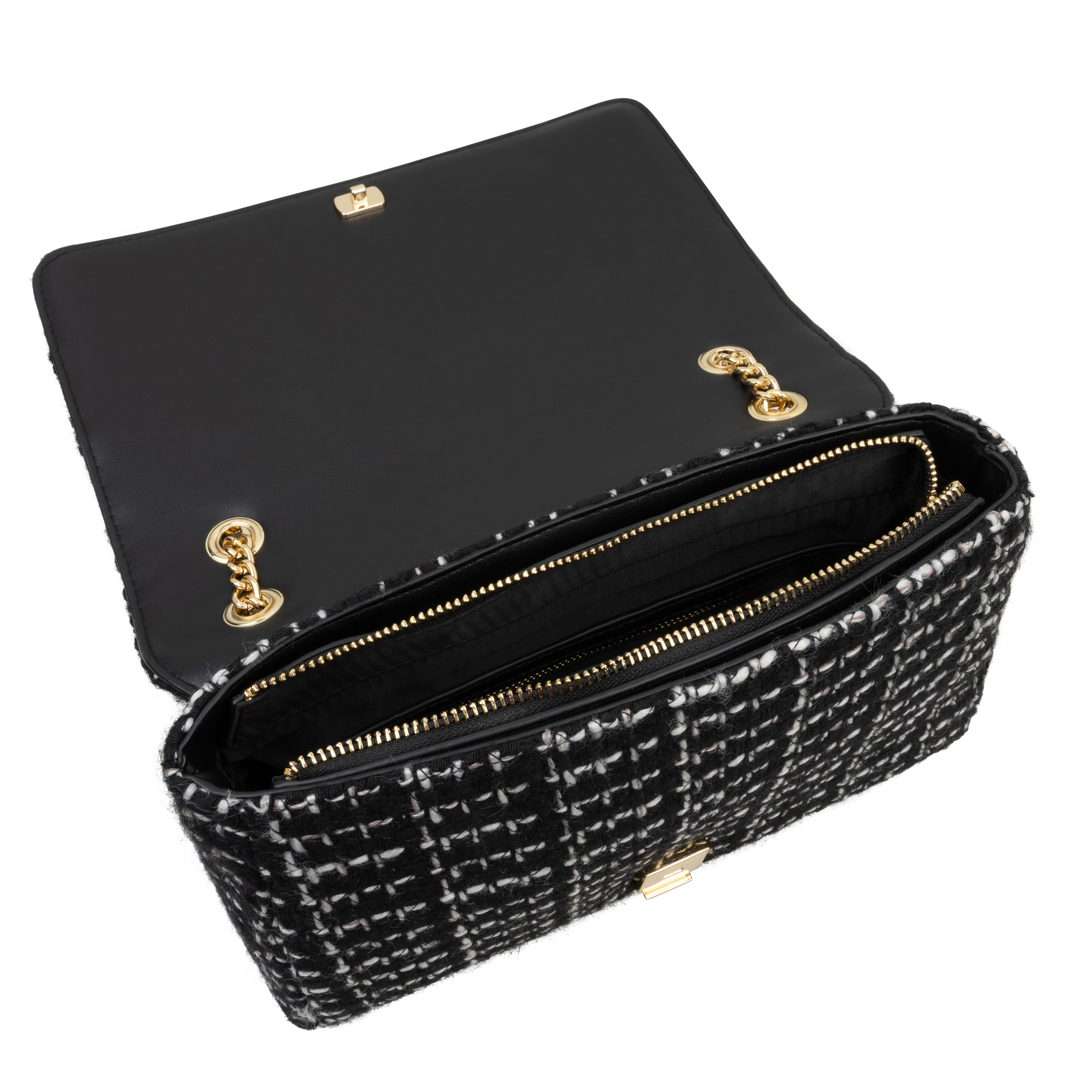 Den smukke kæderem tilføjer et sofistikeret touch og gør tasken let at bære på tværs af kroppen, så du har hænderne fri til andre gøremål. Med dimensionerne H:16, B:26, D:8.5 cm har tasken en praktisk størrelse, der passer til dine nødvendigheder uden at virke for stor. Det stilfulde design fremhæves af guldfarvede logotekst foran, der diskret viser brandets ikoniske stil og kvalitet. Indvendigt finder du et primært hovedrum, der giver rigelig plads til dine personlige ejendele, uanset om du er på vej til arbejde eller en aften ude. Denne Tweed Crossbody taske er et must-have tilbehør for dem, der søger både funktionalitet og luksus i deres daglige liv.