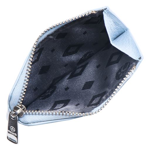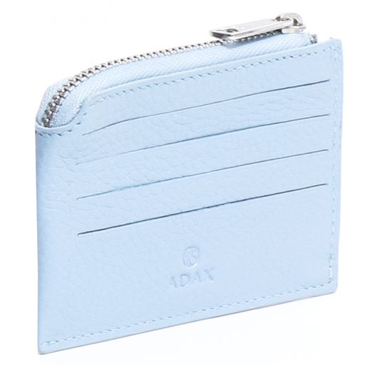 Lille tynd kortholder med plads til otte kort samt mønter. Kortholderen er fremstillet i kalveskind og er designet med en grov sølv lynlås.