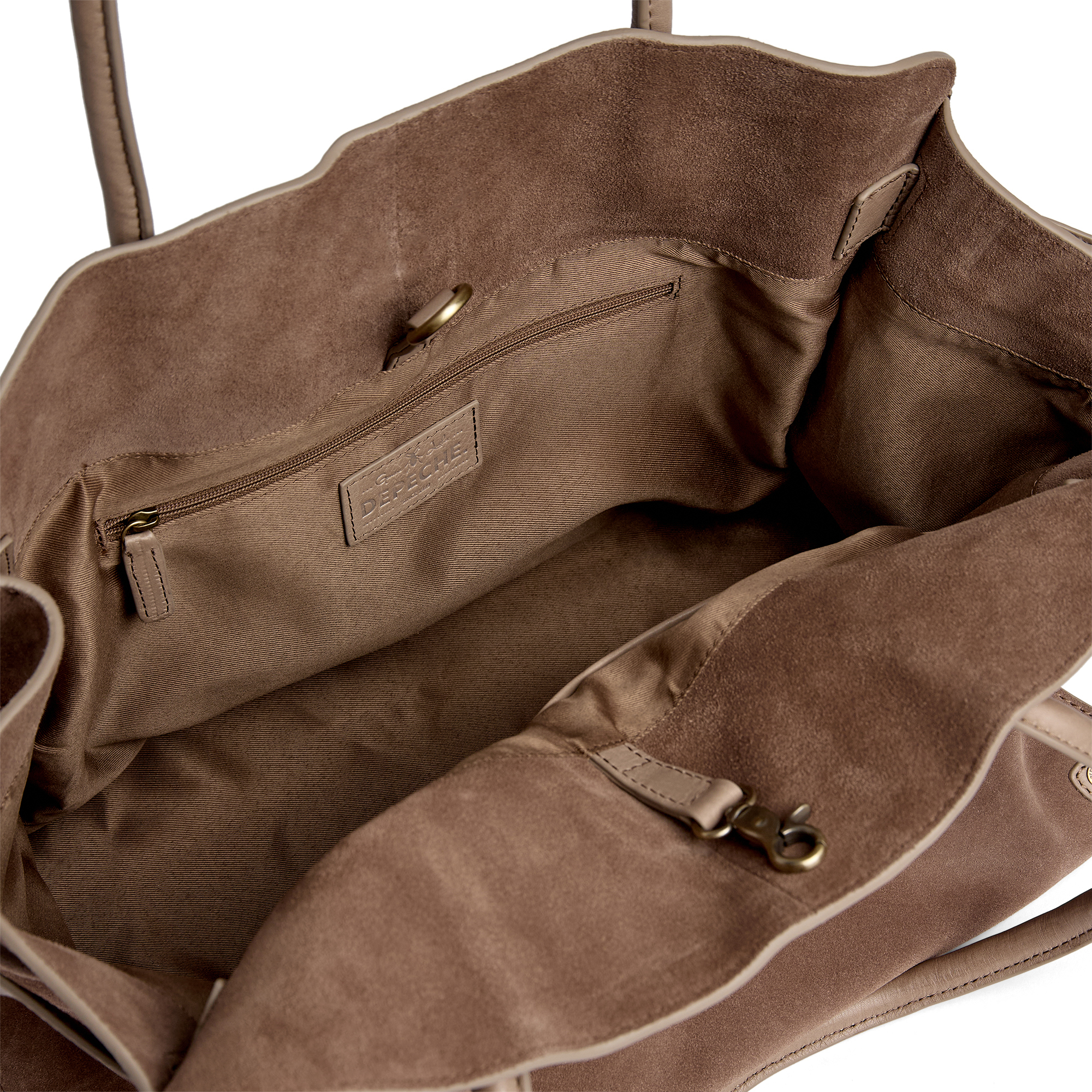 Denne shopper fra Depeche kombinerer stil og funktionalitet i en perfekt balance, hvilket gør den til en ideel følgesvend til både hverdagens gøremål og shoppingture. Tasken er fremstillet i blødt ruskind, hvilket giver den et luksuriøst og stilrent udtryk, mens dens rummelighed sikrer, at du har plads til alle dine nødvendigheder.