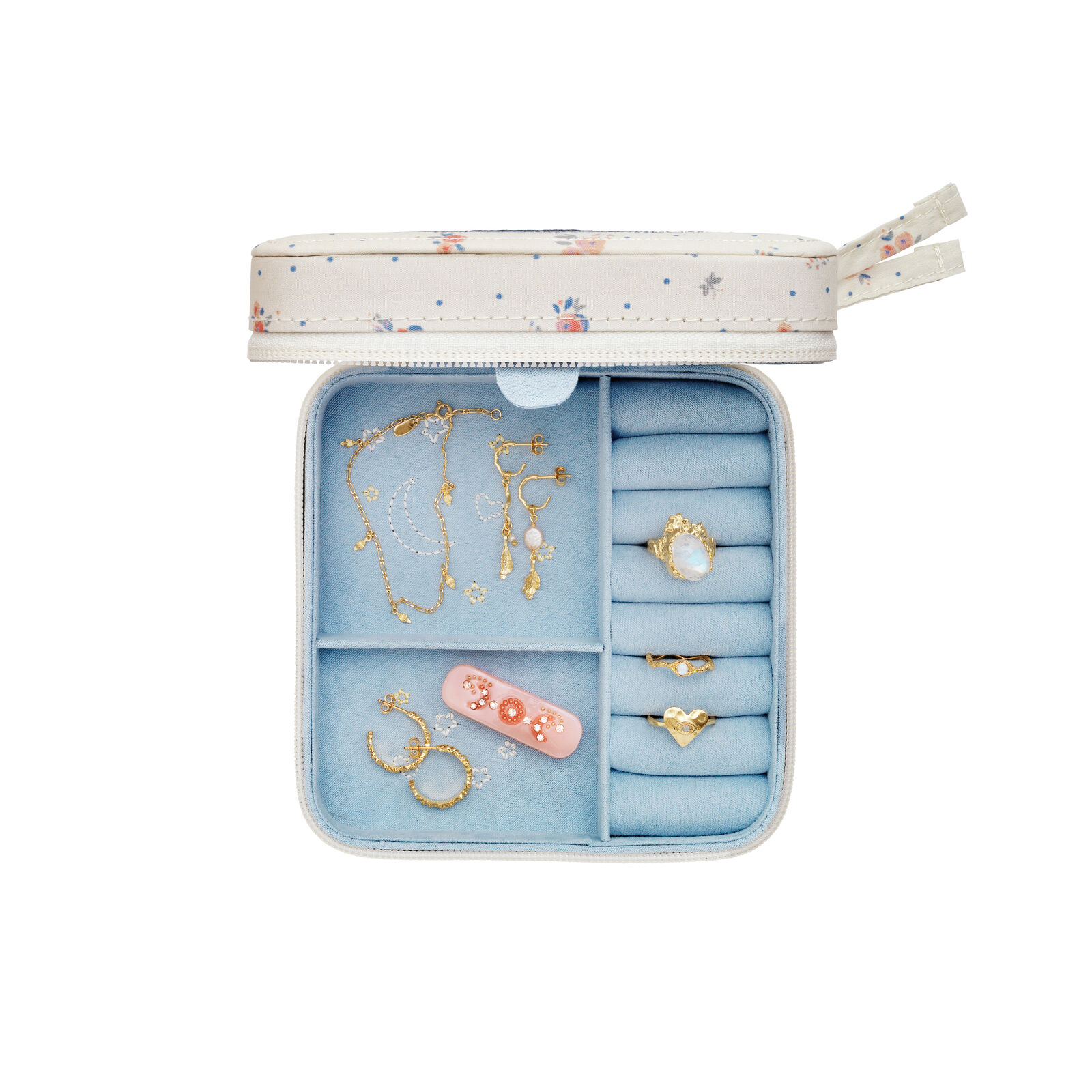 Amelia Smykkeskrin fra Maanesten er den perfekte løsning til at opbevare dine smykker med stil og elegance. Dette smykkeskrin er designet med en praktisk lynlåslukning, der sikrer, at dine værdifulde genstande forbliver sikkert opbevaret. Skrinet er udsmykket med smukke broderidetaljer, der tilføjer et strejf af luksus og femininitet.