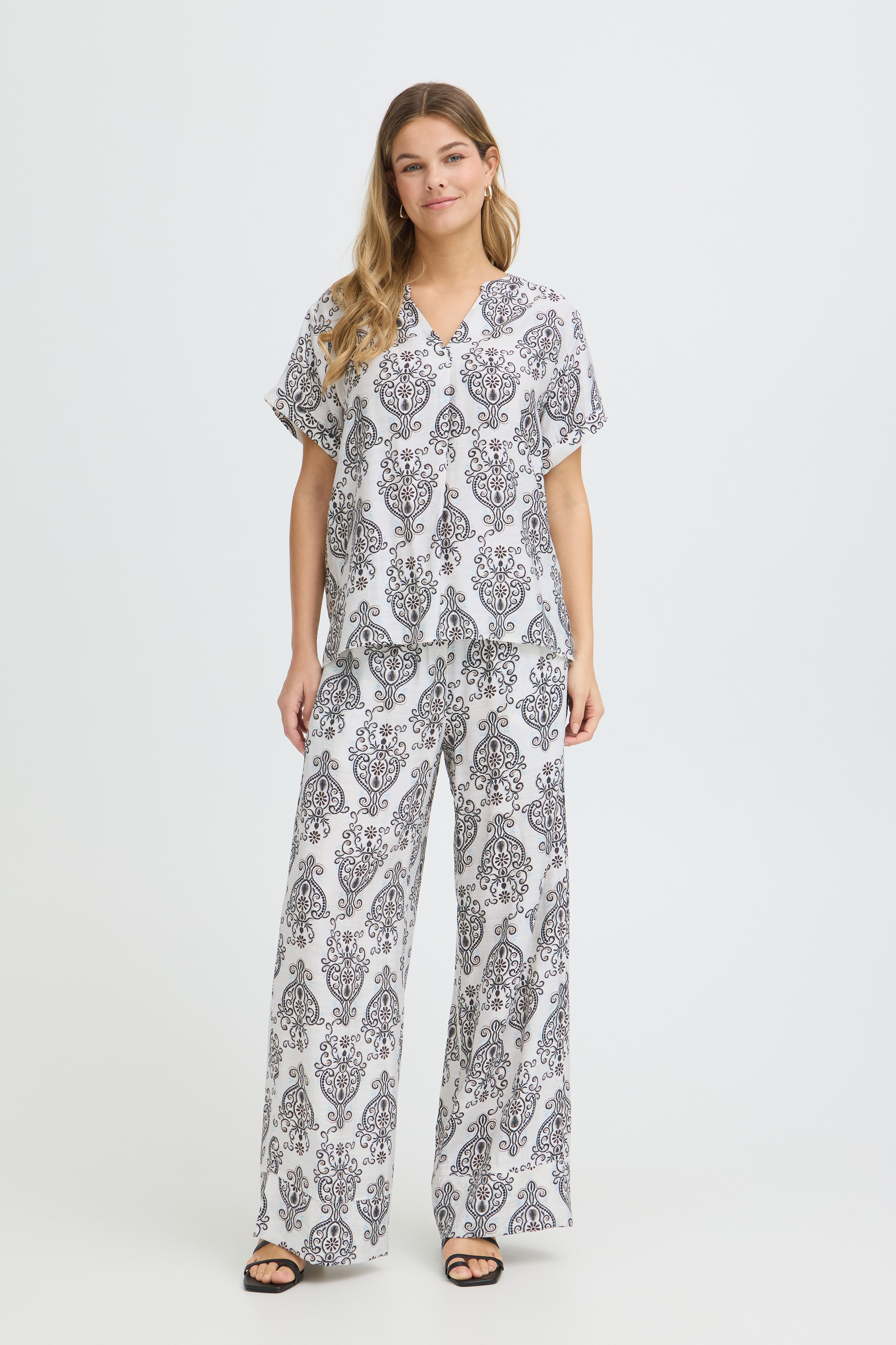 Ariana Bluse, Boho Muse White W. Black, XXL
