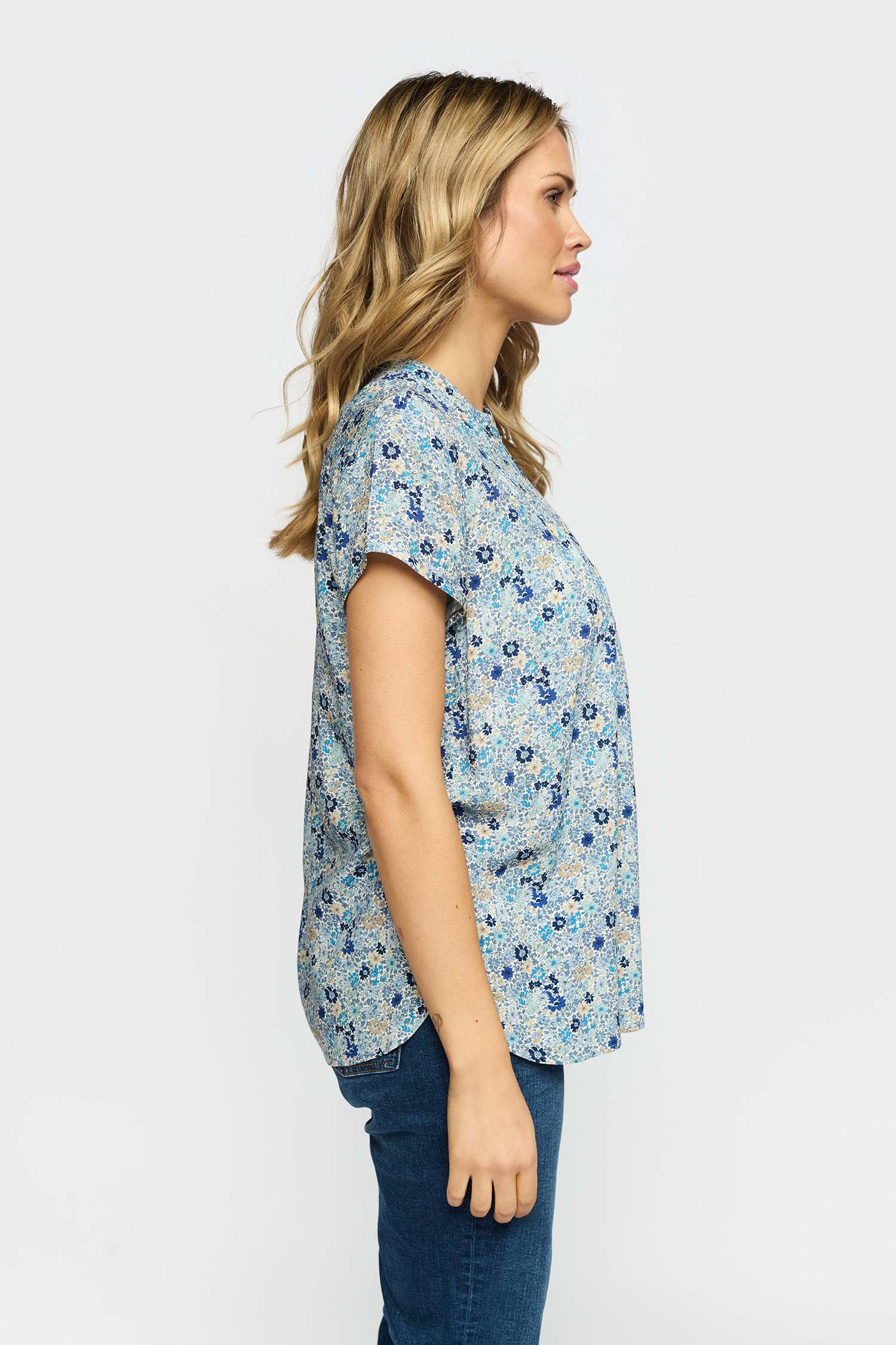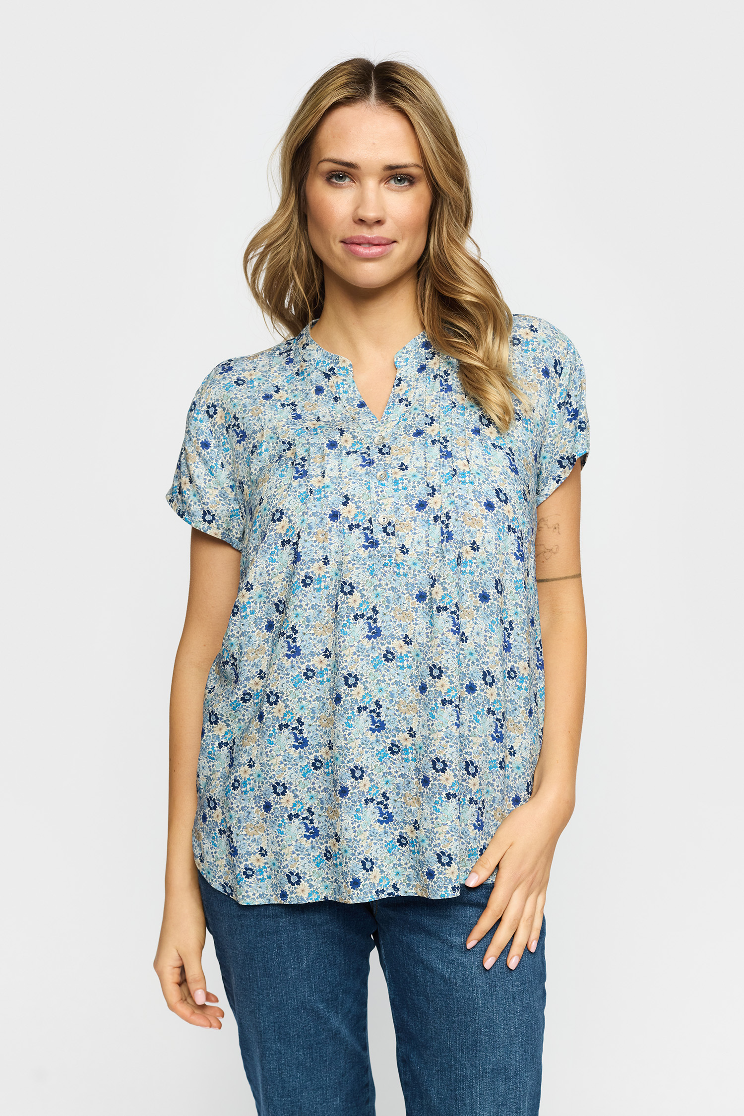 Bloome Bluse, Blue Small Flower, XXL
