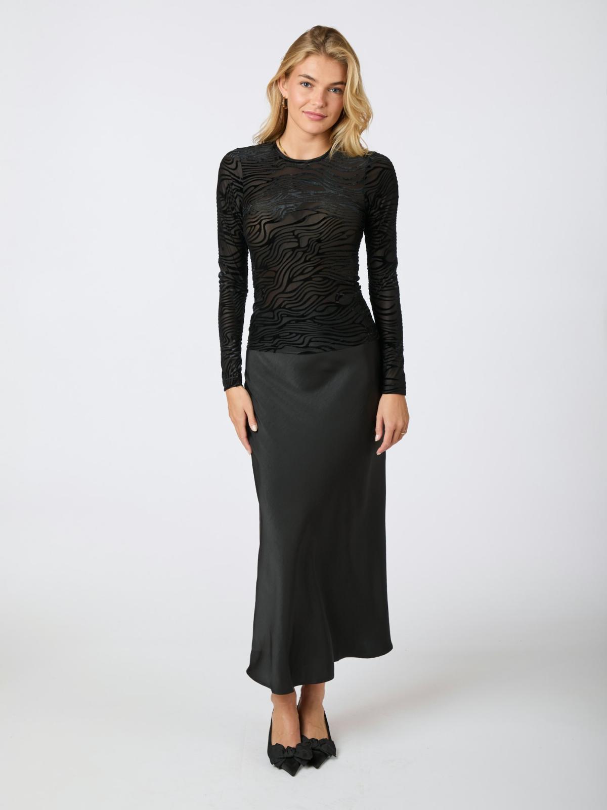 Ella Zebra Burnout Bluse, Black, 36