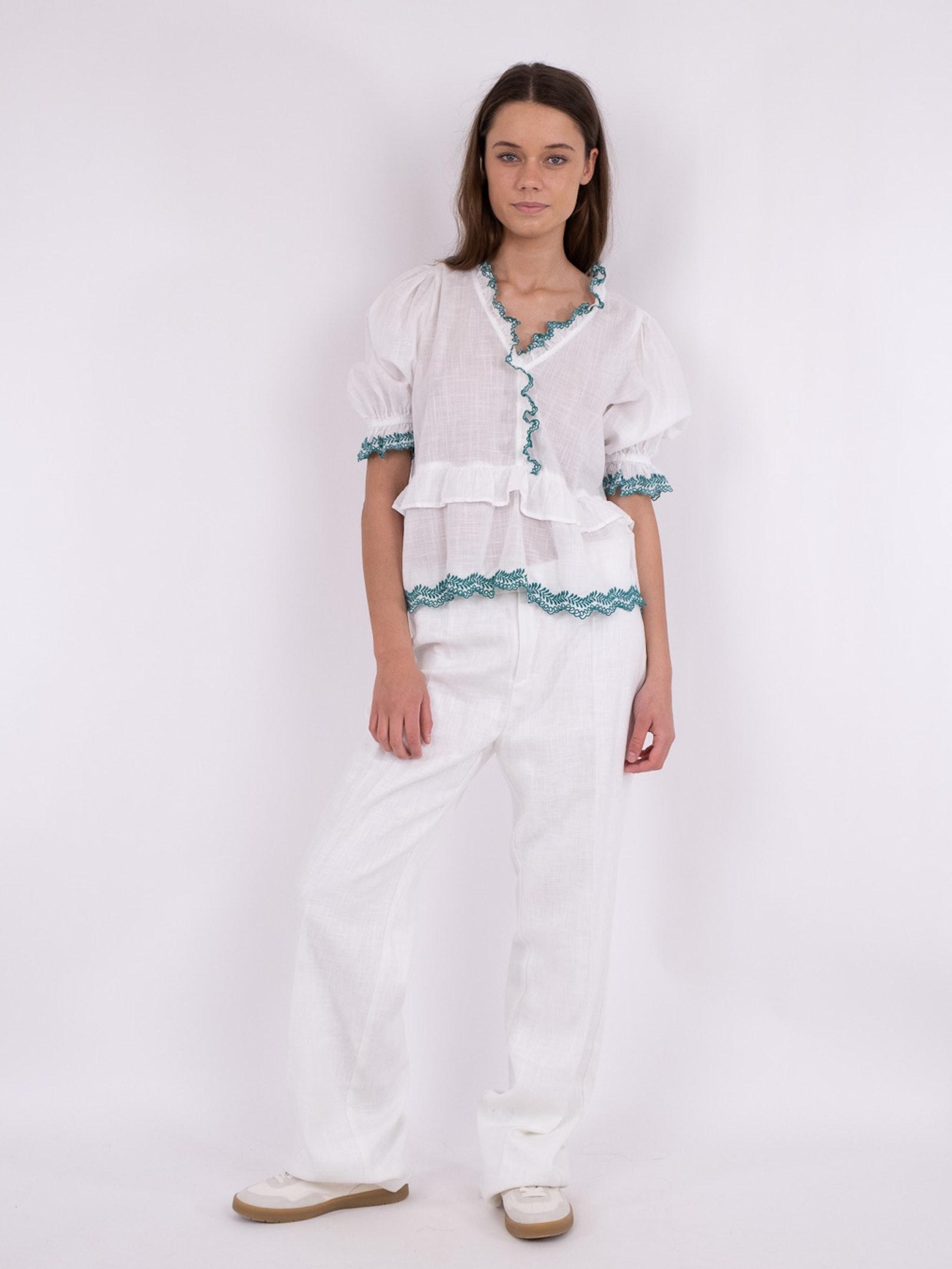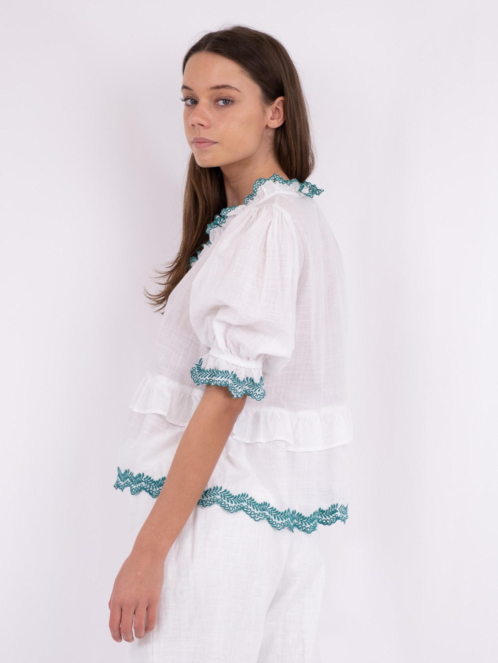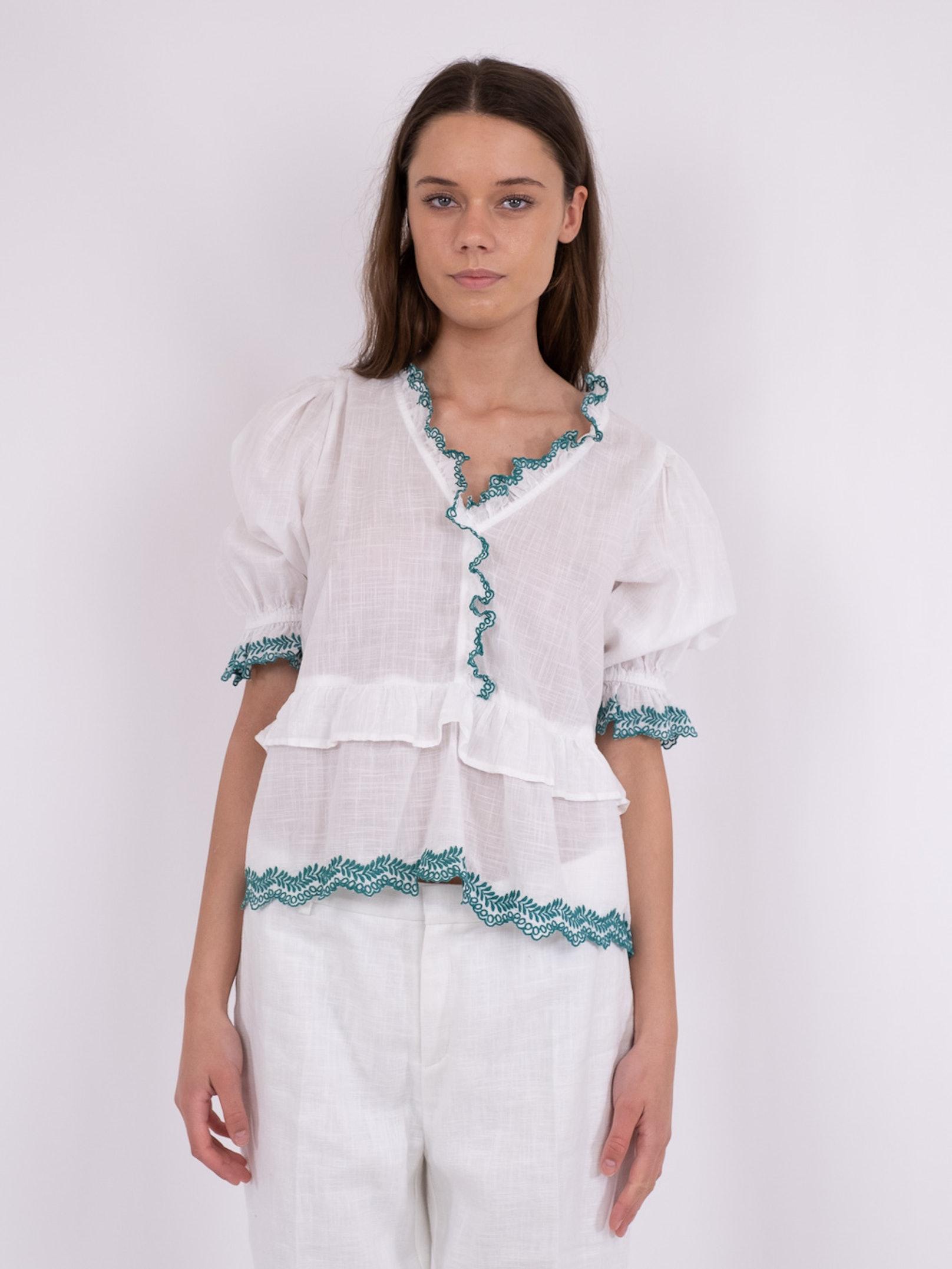 Emmi Bluse, Hvid/Grøn, 38
