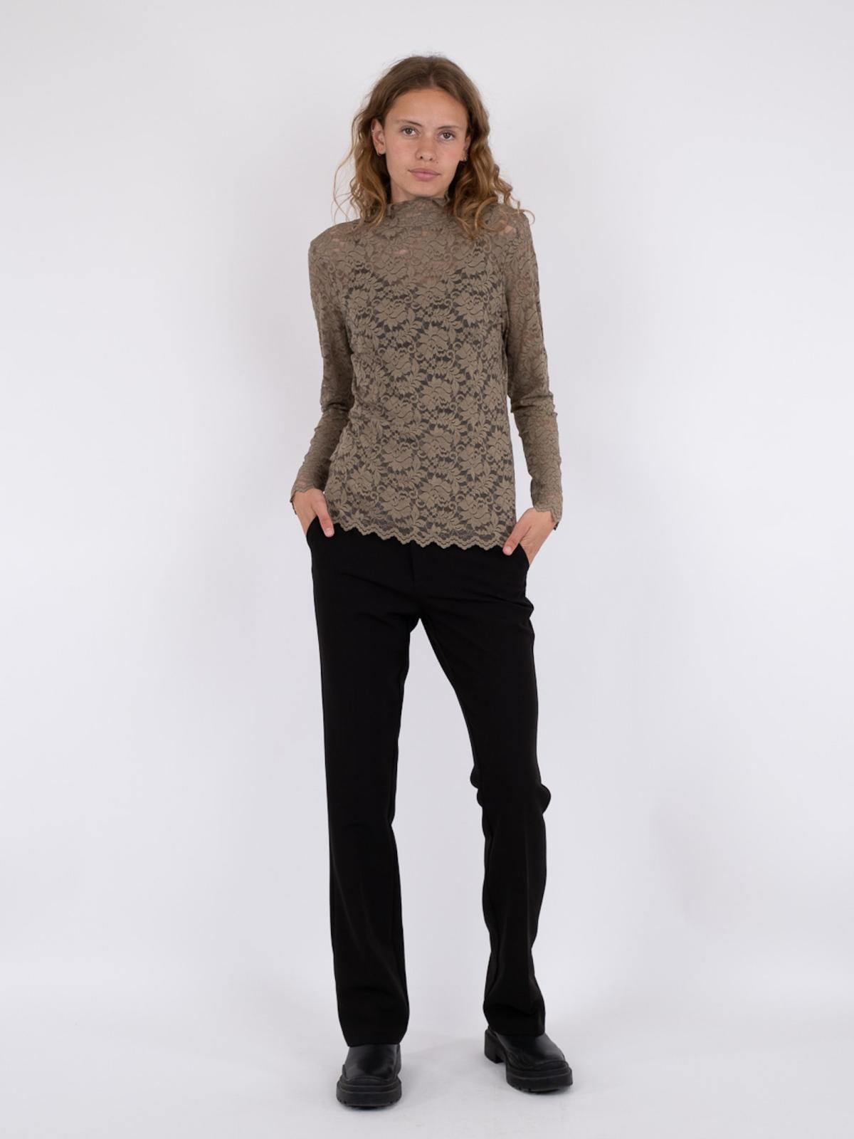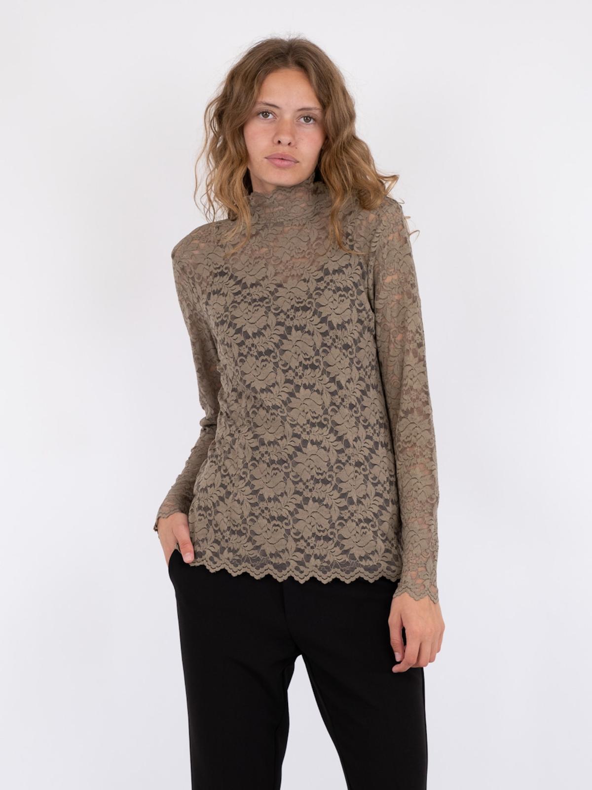 Liza Laceflower Bluse, Dark Taupe, 34