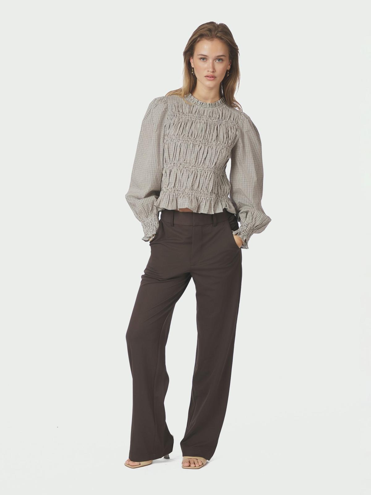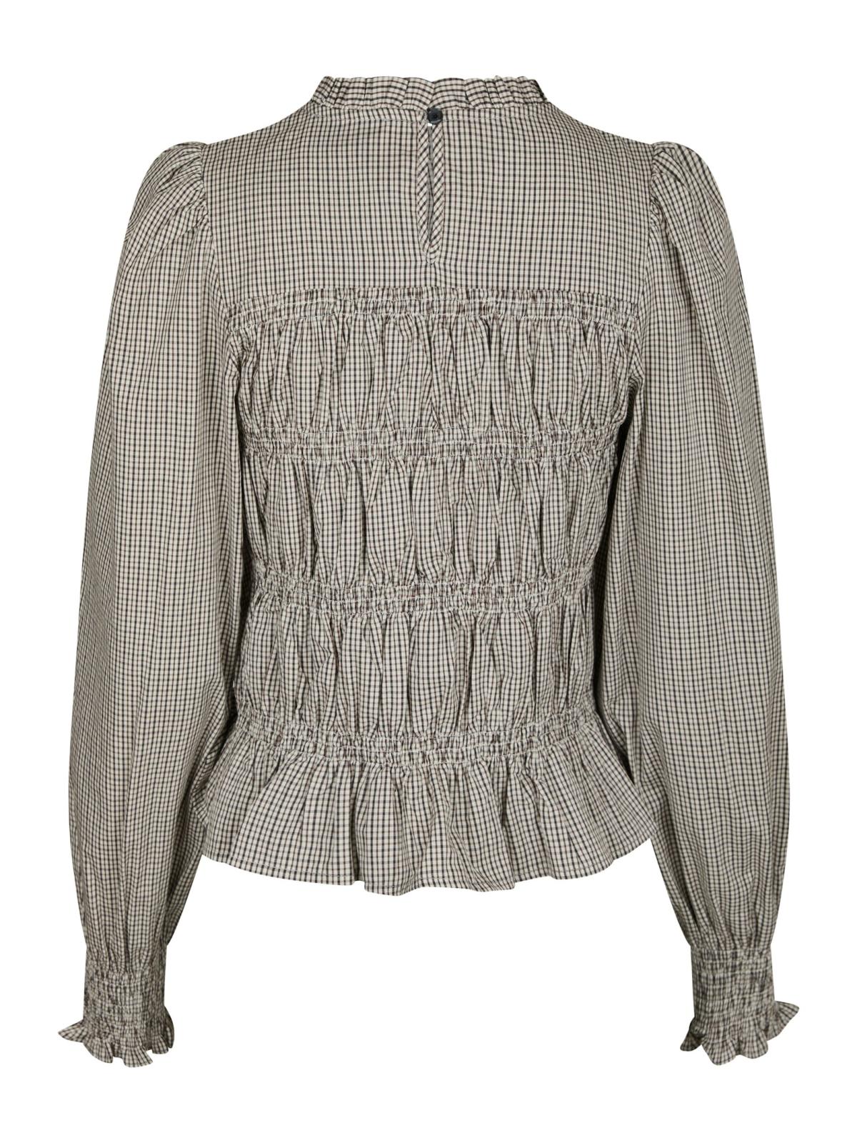Blusen er kendetegnet ved sit smock-design, som fremhæver den kropsnære pasform på en elegant måde. Det iøjnefaldende ternede mønster giver et moderne og trendy look, der kan styles til både hverdag og fest. Flæsedetaljerne bidrager yderligere til blusens feminine udtryk og tilføjer et strejf af romantik til dit outfit. Marcia Check Bluse er perfekt til dig, der ønsker en kombination af komfort og stil i din påklædning.