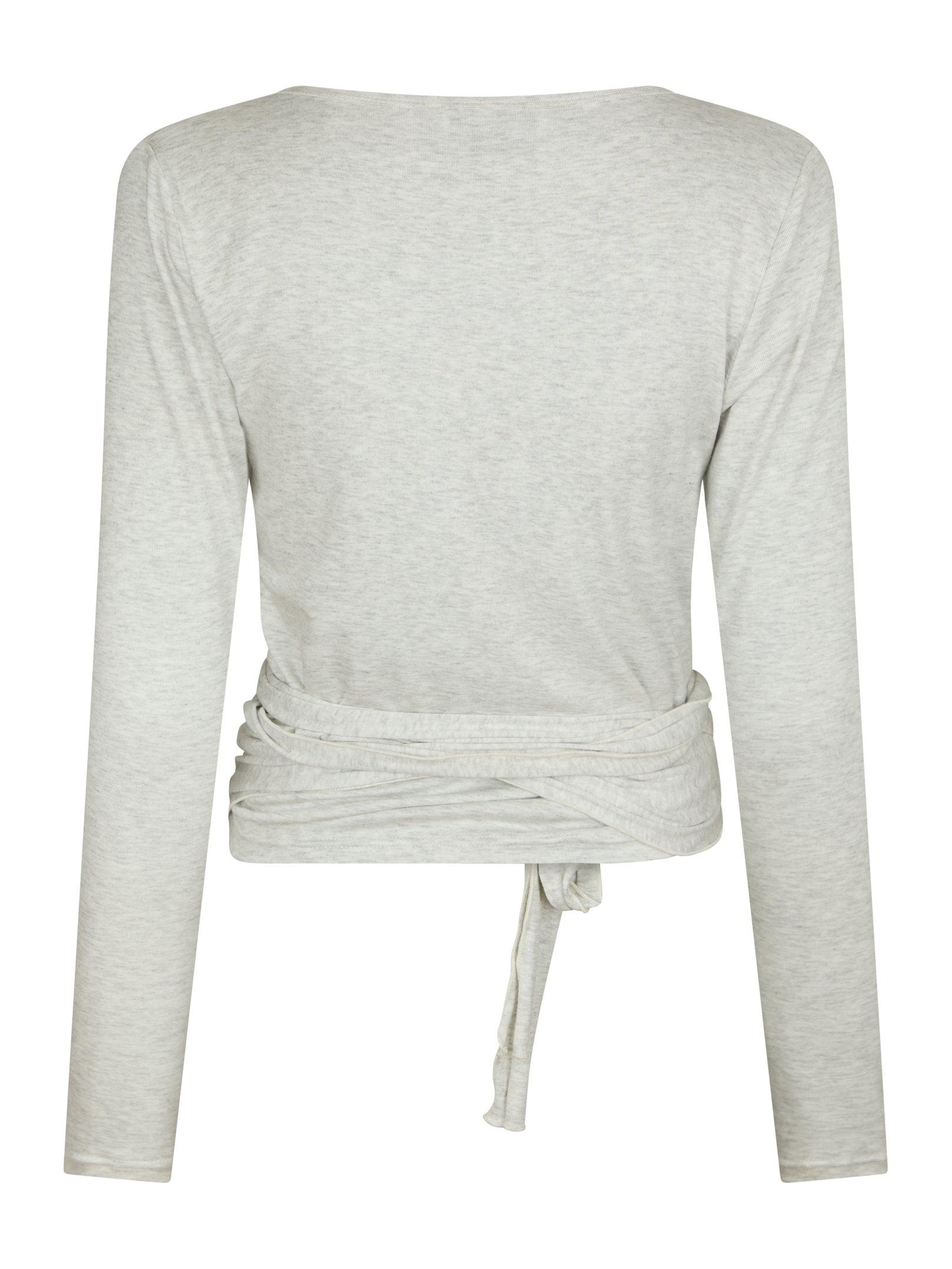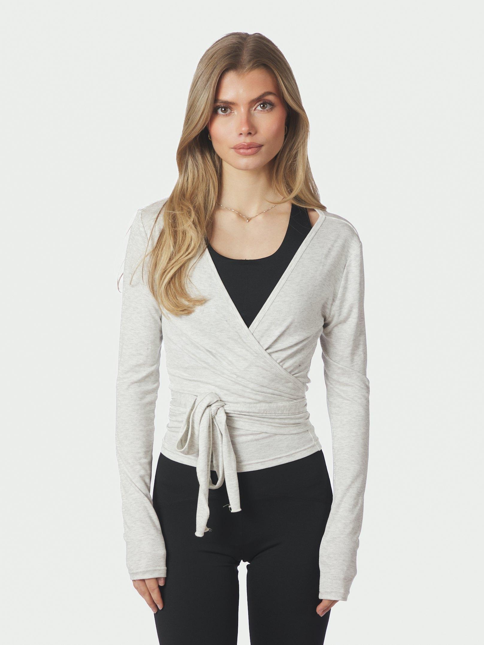 Nia Jersey Wrap Bluse, Light Grey Melange, 42