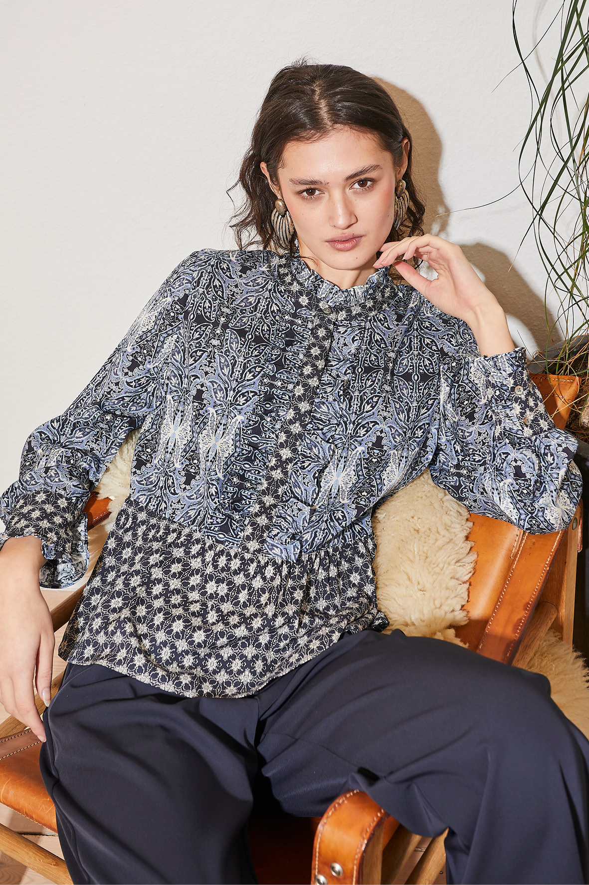 Sabria Bluse, Dark Blue Mix, 34