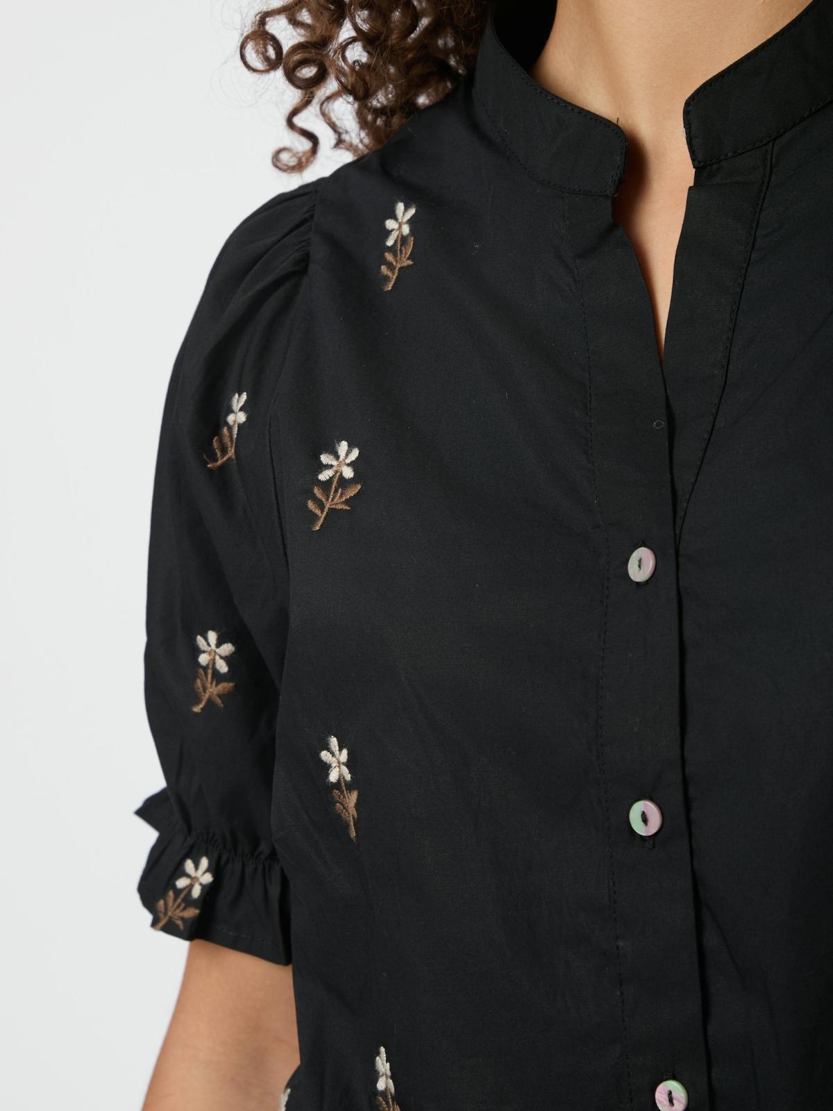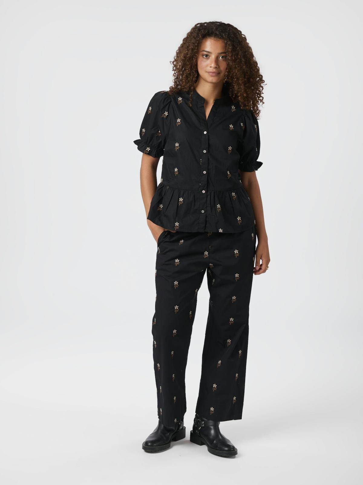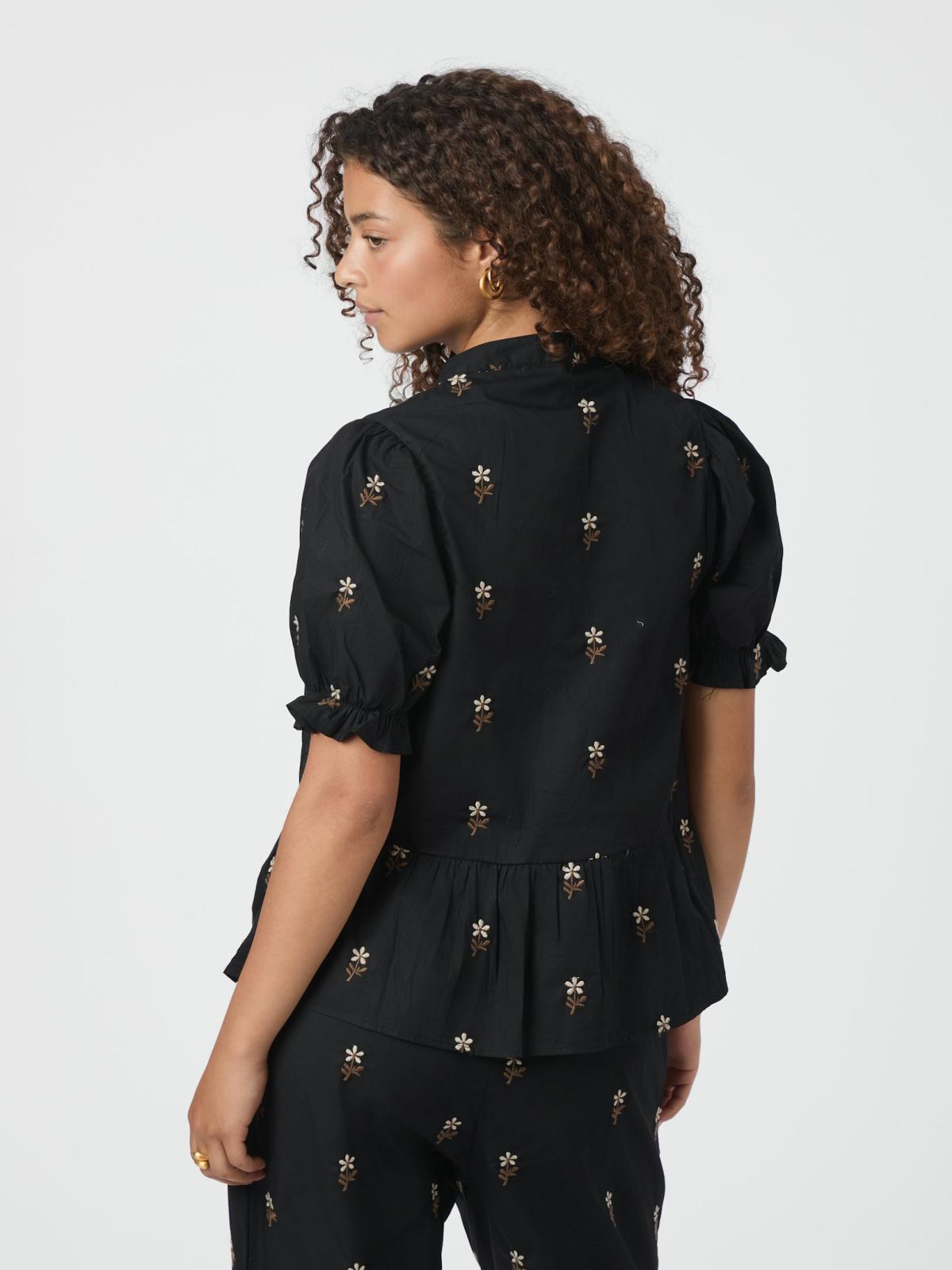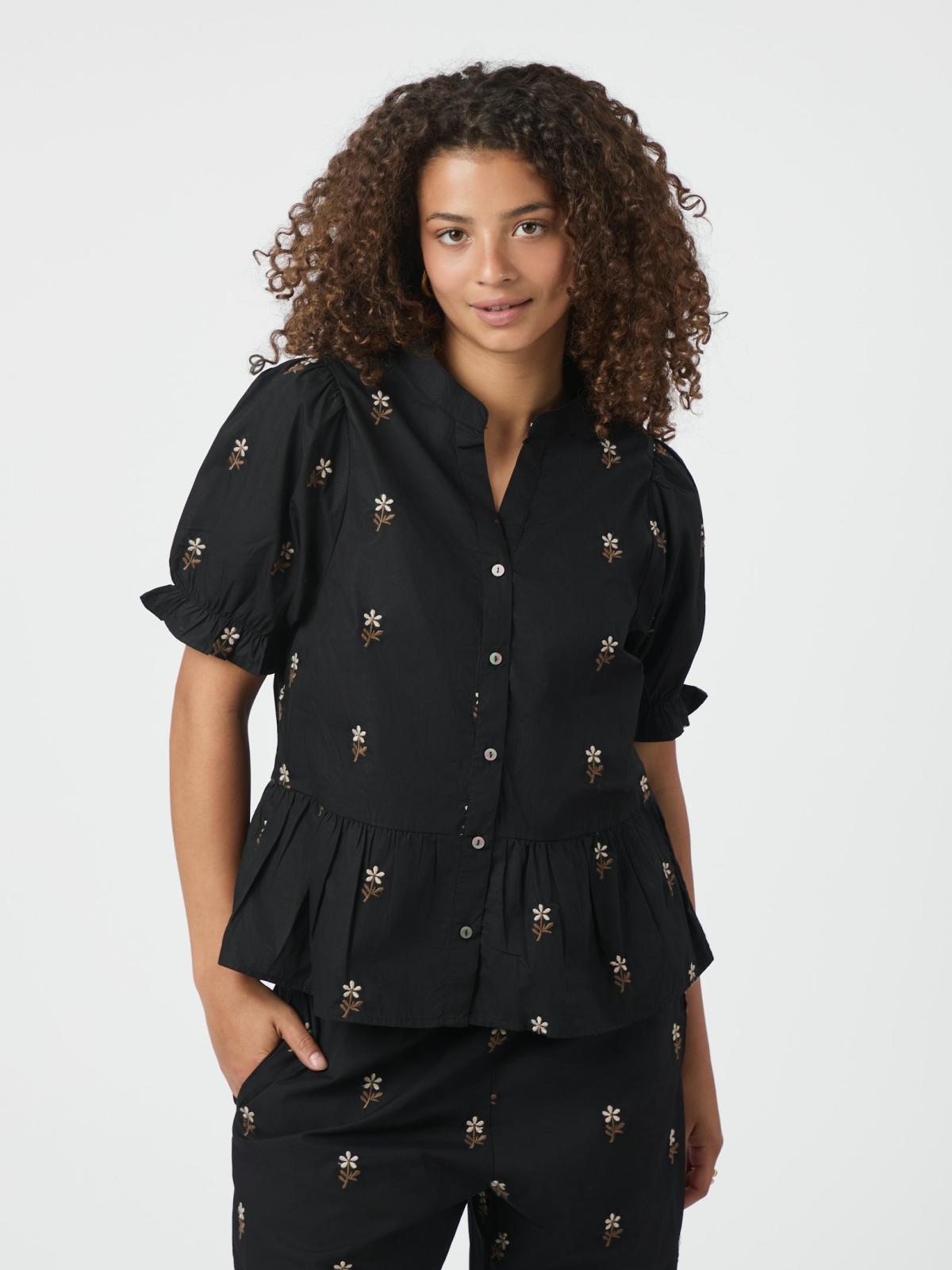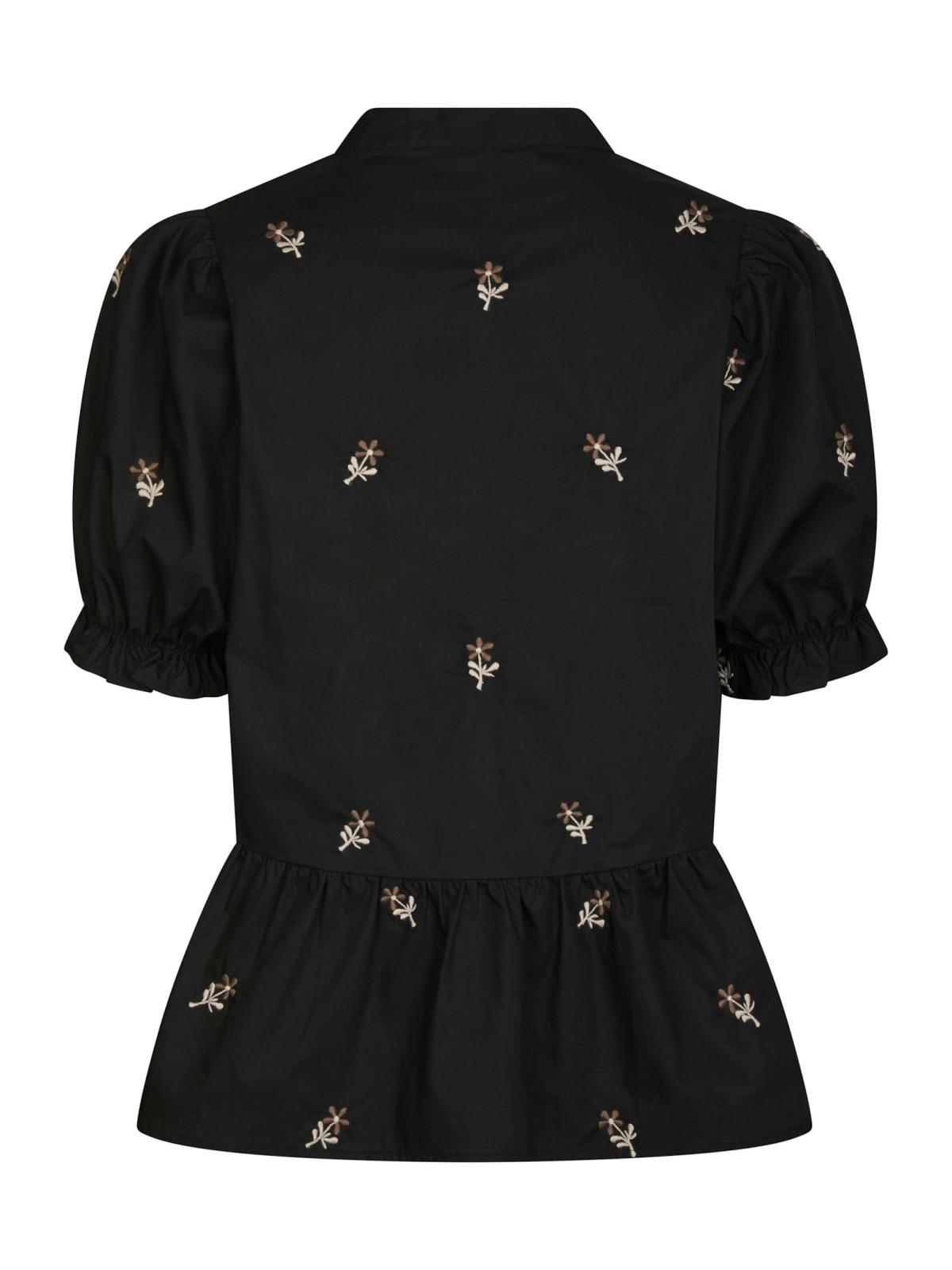 Savy Flower Emb Bluse, Black, 36