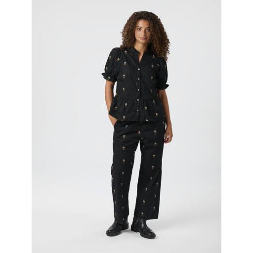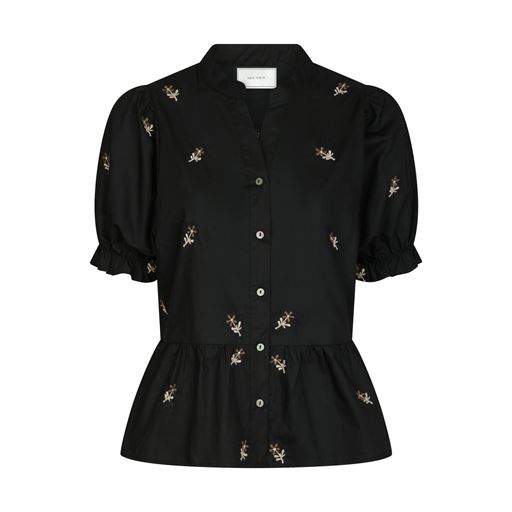 Savy Flower Emb Bluse, Black, 40