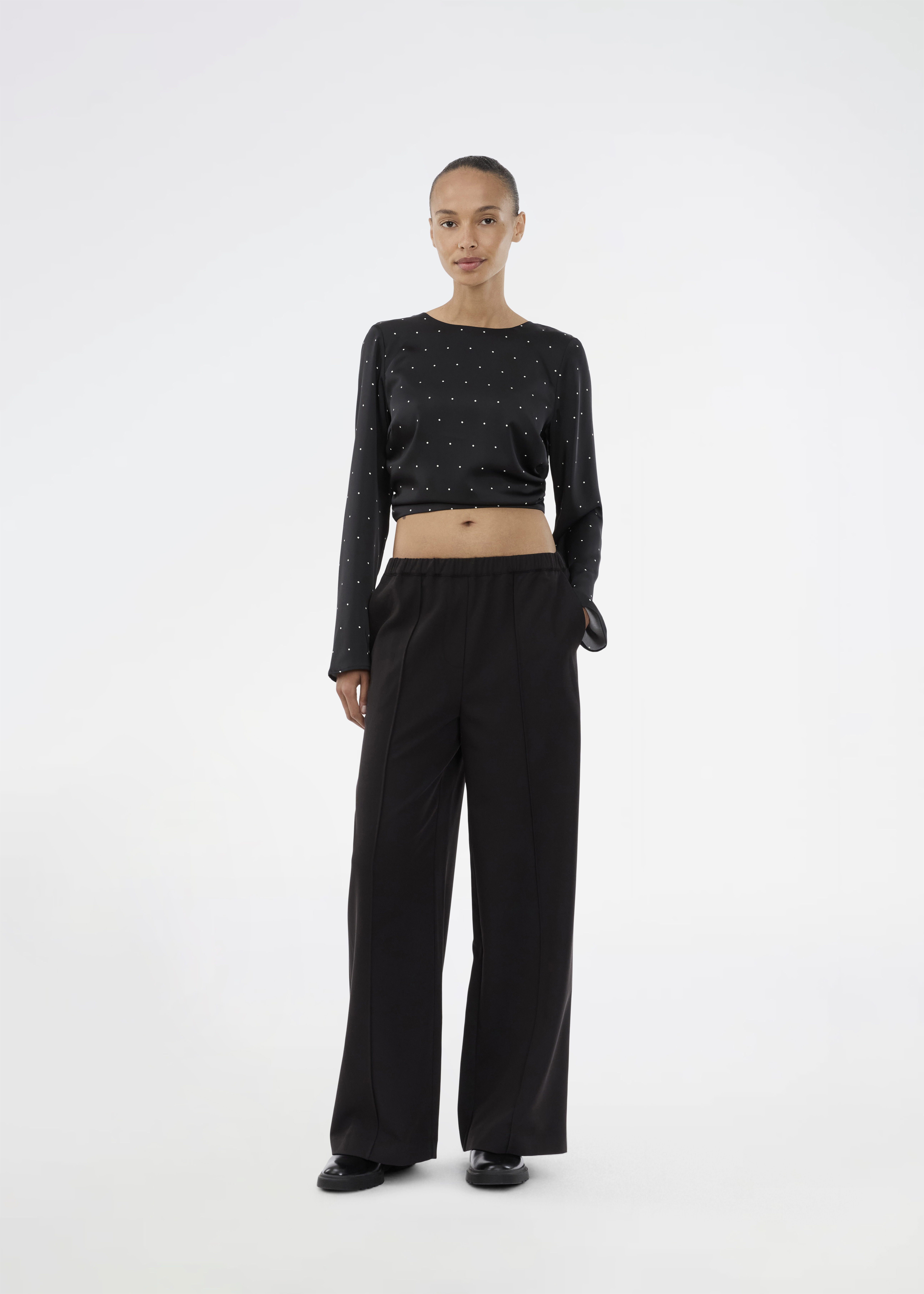 Blusen er prydet med små prikker, der tilføjer et diskret, men stilfuldt mønster, som er både iøjnefaldende og elegant. Med sin almindelige pasform sikrer TailorMD Print Top komfort uden at gå på kompromis med stilen. Den er fremstillet af satinmateriale, hvilket giver en blød og glat fornemmelse mod huden og tilføjer en luksuriøs glans. Uanset om du kombinerer den med et par jeans eller en nederdel, vil denne bluse fra Modström være et alsidigt og stilfuldt valg til din garderobe.