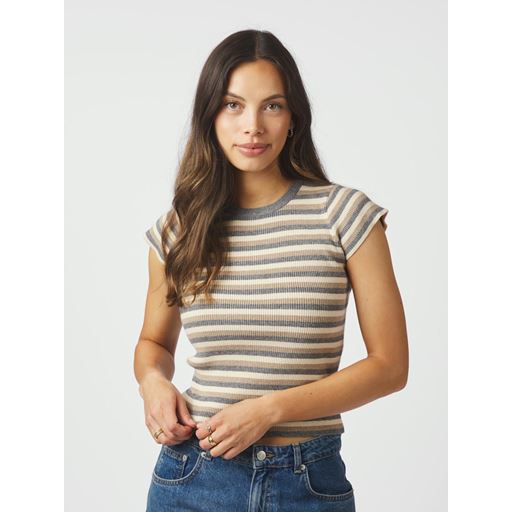 Tirra Simple Stripe Knit Top, Grey, 40