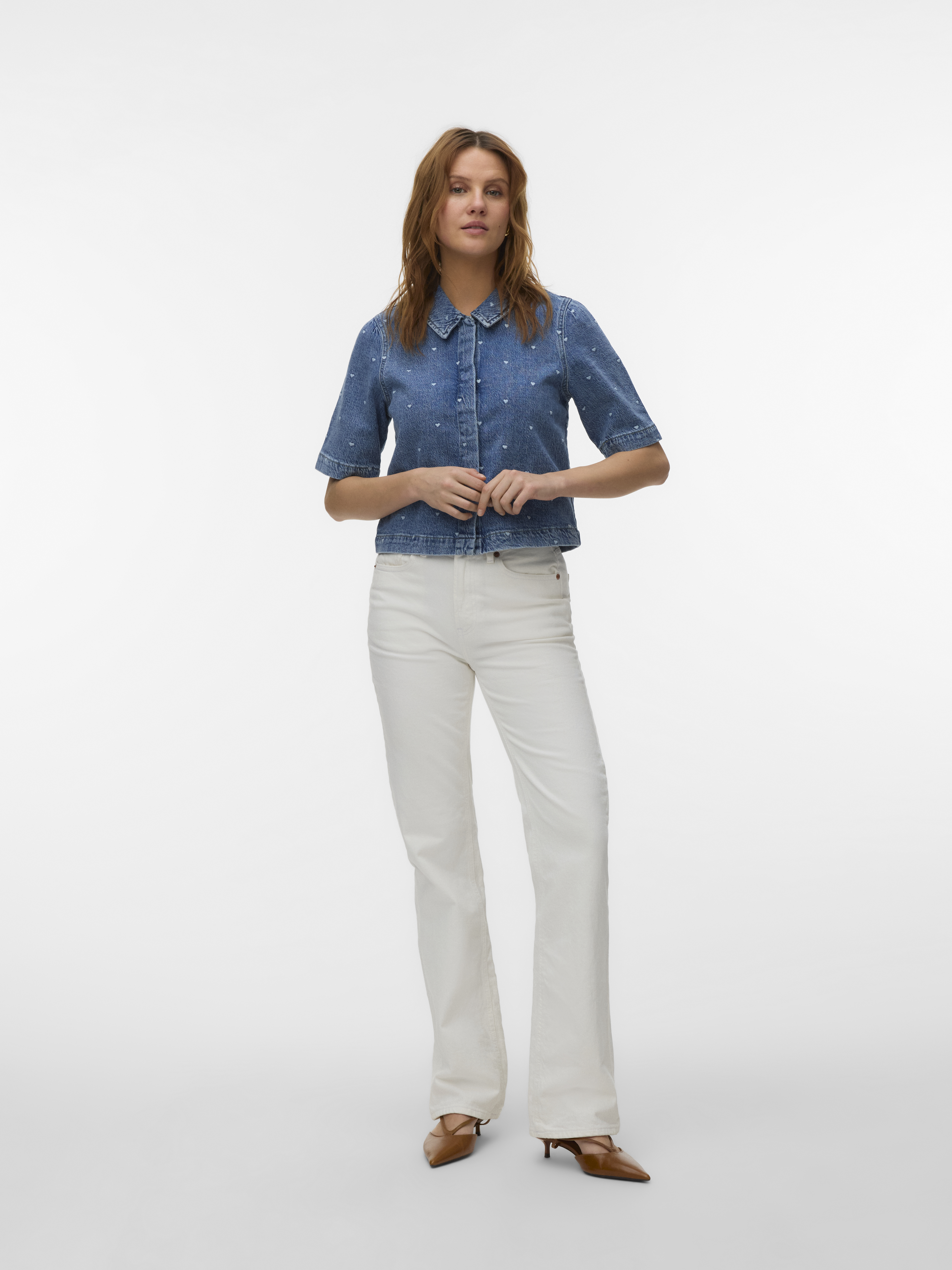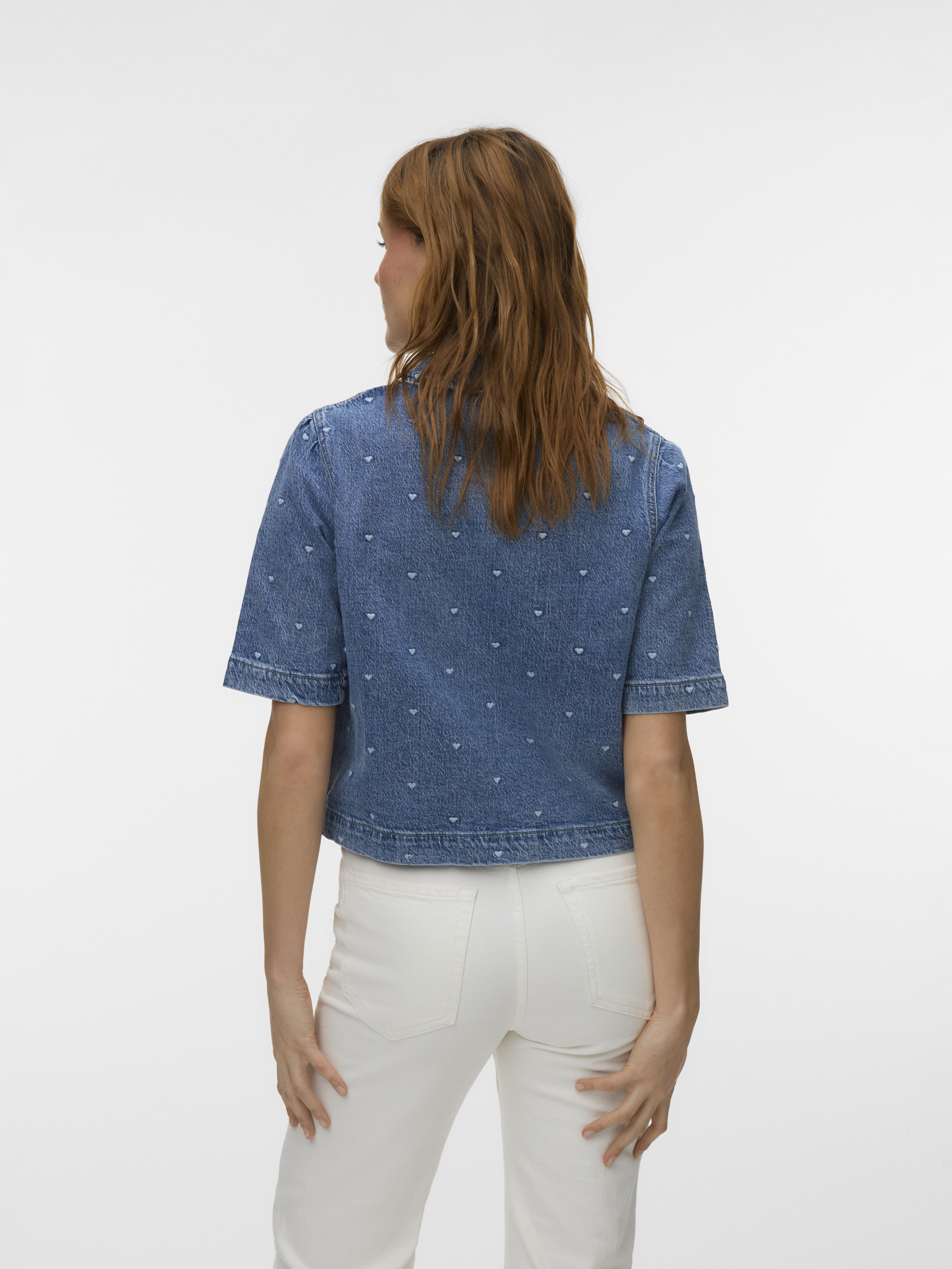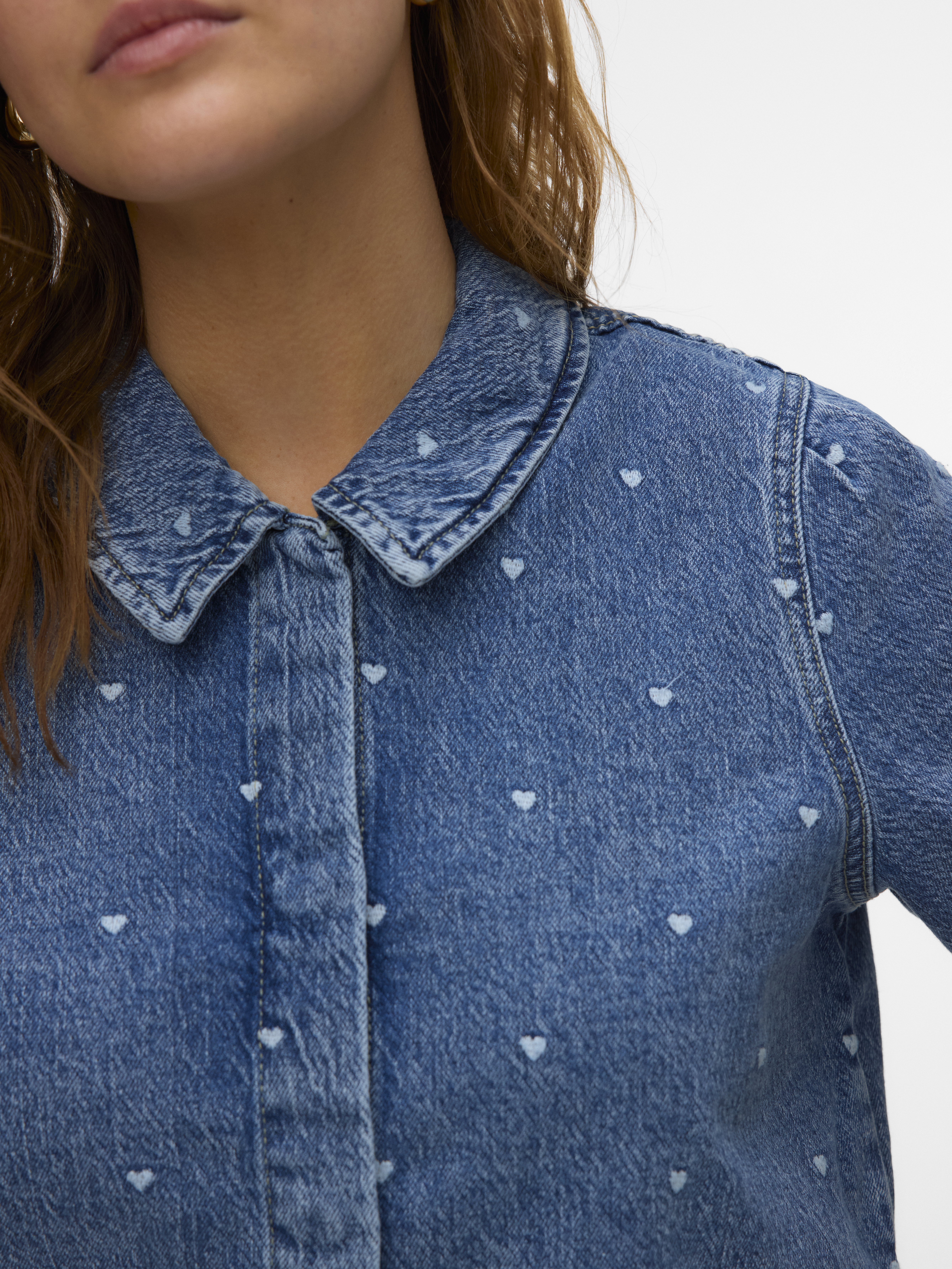 Dionne 2/4 Denim Skjorte fra Vero Moda er en stilfuld tilføjelse til enhver garderobe med sit unikke design og moderne detaljer. Denne skjorte er designet af mærket Vero Moda og tilbyder både komfort og stil. Med sine 2/4 ærmer kombinerer den en let og luftig følelse, der gør den ideel til overgangsvejr eller som en del af et lag-på-lag look. Den klassiske krave tilføjer et tidløst touch til skjorten, mens knaplukningen foran sikrer en nem og fleksibel pasform. Skjorten har en kort længde, hvilket gør den perfekt til at parre med højtaljede bukser eller nederdele for et moderne og chic udseende. Det charmerende all-over hjerteprint tilfører en legende detalje, der skiller sig ud og giver et feminint touch til dit outfit. Med sin regulære pasform er Dionne skjorten både behagelig og alsidig, hvilket gør den til et perfekt valg til både hverdags- og festanledninger. Denne denim skjorte er et must-have for dem, der ønsker at tilføje lidt ekstra flair til deres tøjkollektion.