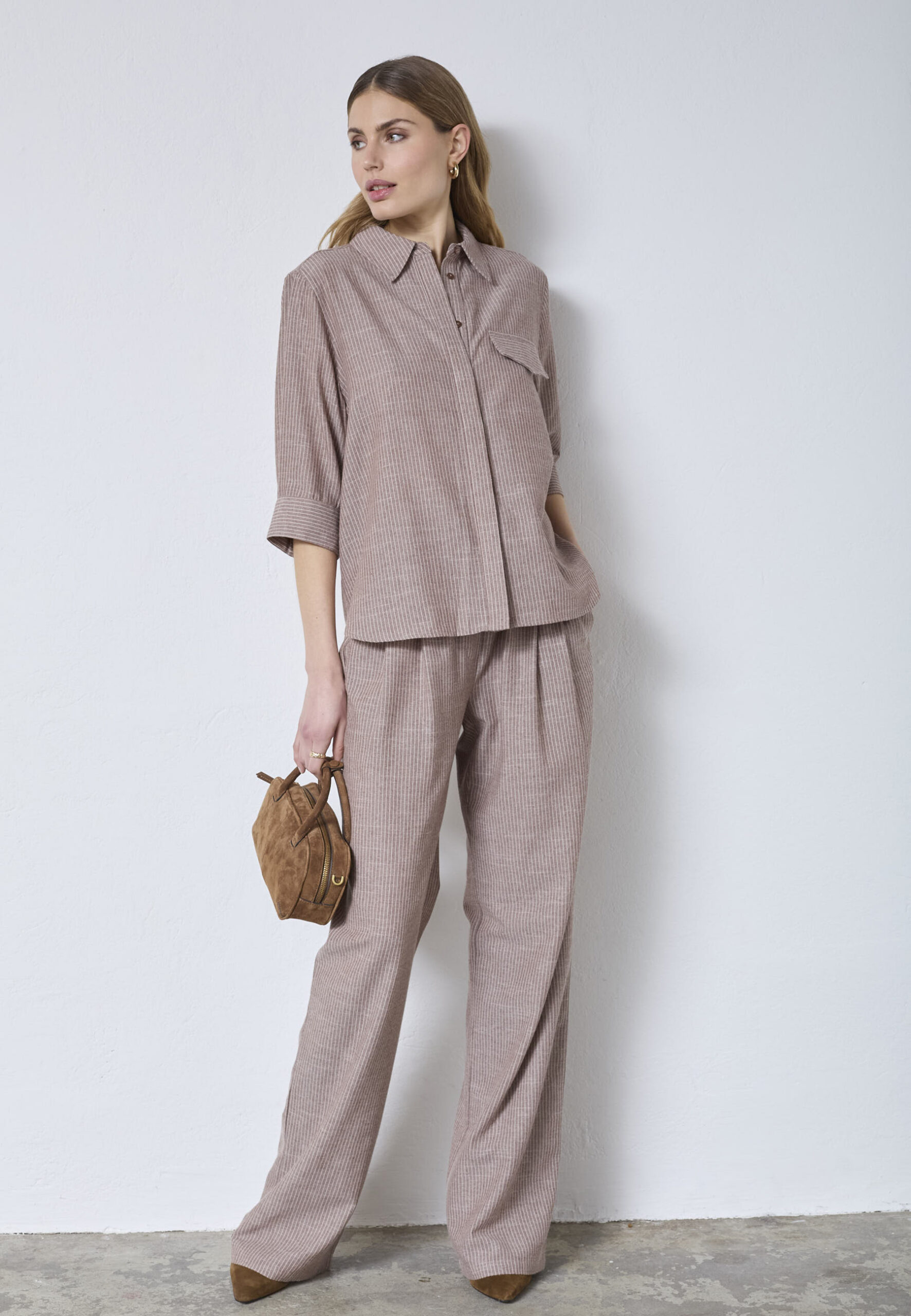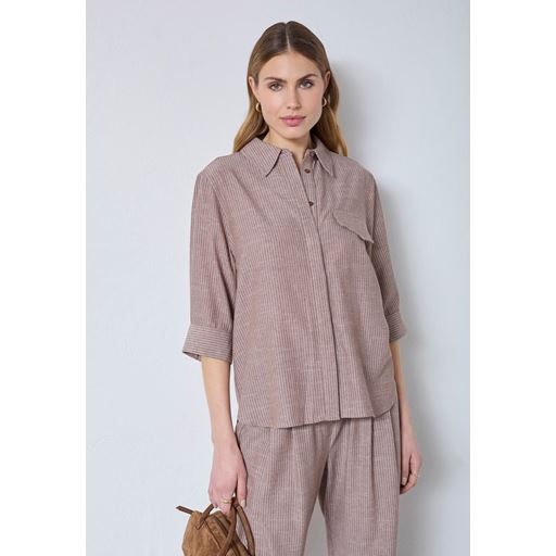 JihoCC Stripe Skjorte, Brown, M