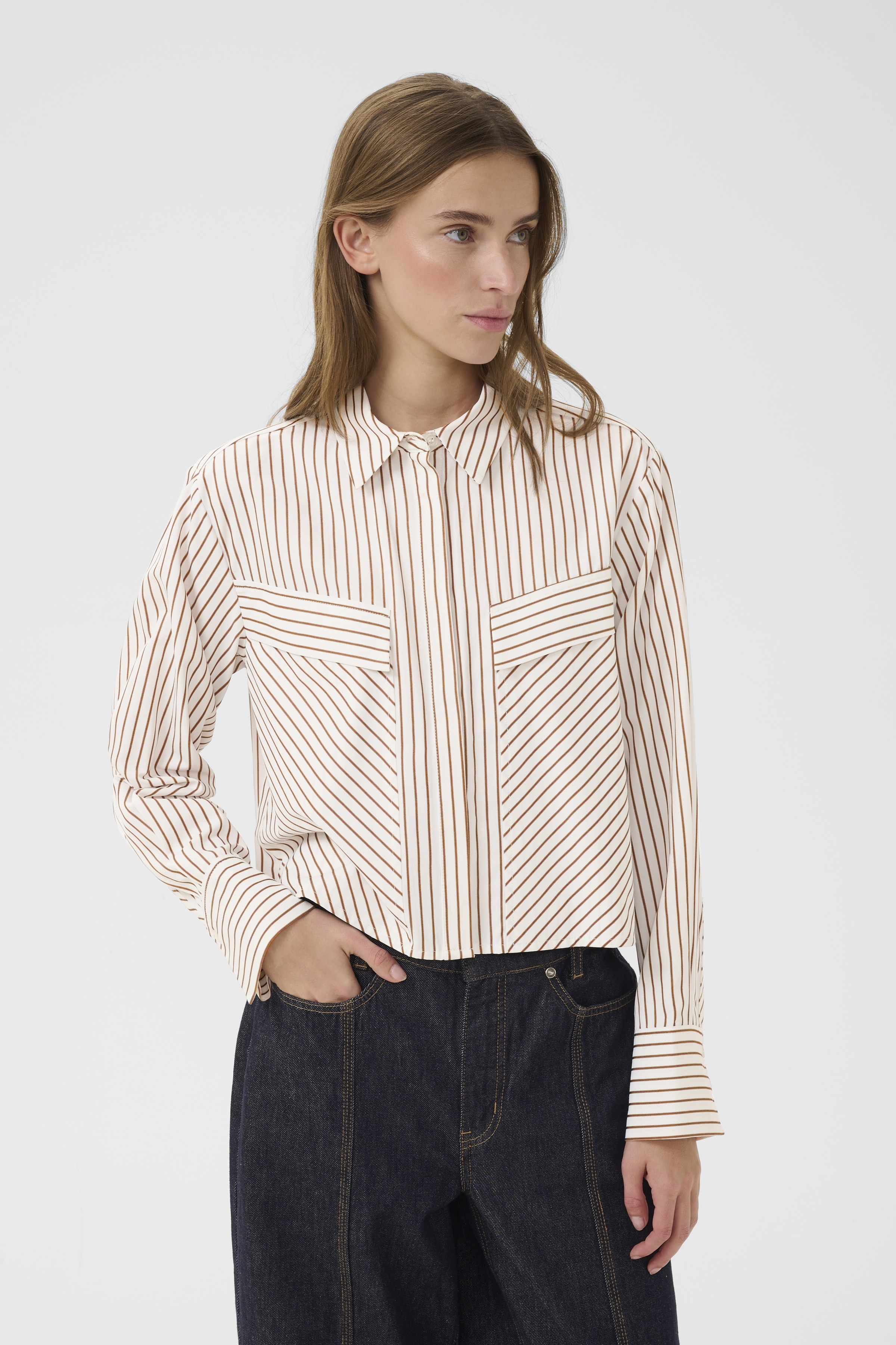 KBElmira Skjorten fra Karen By Simonsen er et elegant valg til garderoben for enhver kvinde, der ønsker at kombinere stil med komfort. Denne langærmede skjorte er designet med en almindelig krave, der giver et klassisk og tidløst udtryk. Den skjulte knaplukning tilføjer en ekstra dimension af raffinement og gør skjorten velegnet til både formelle og afslappede begivenheder.