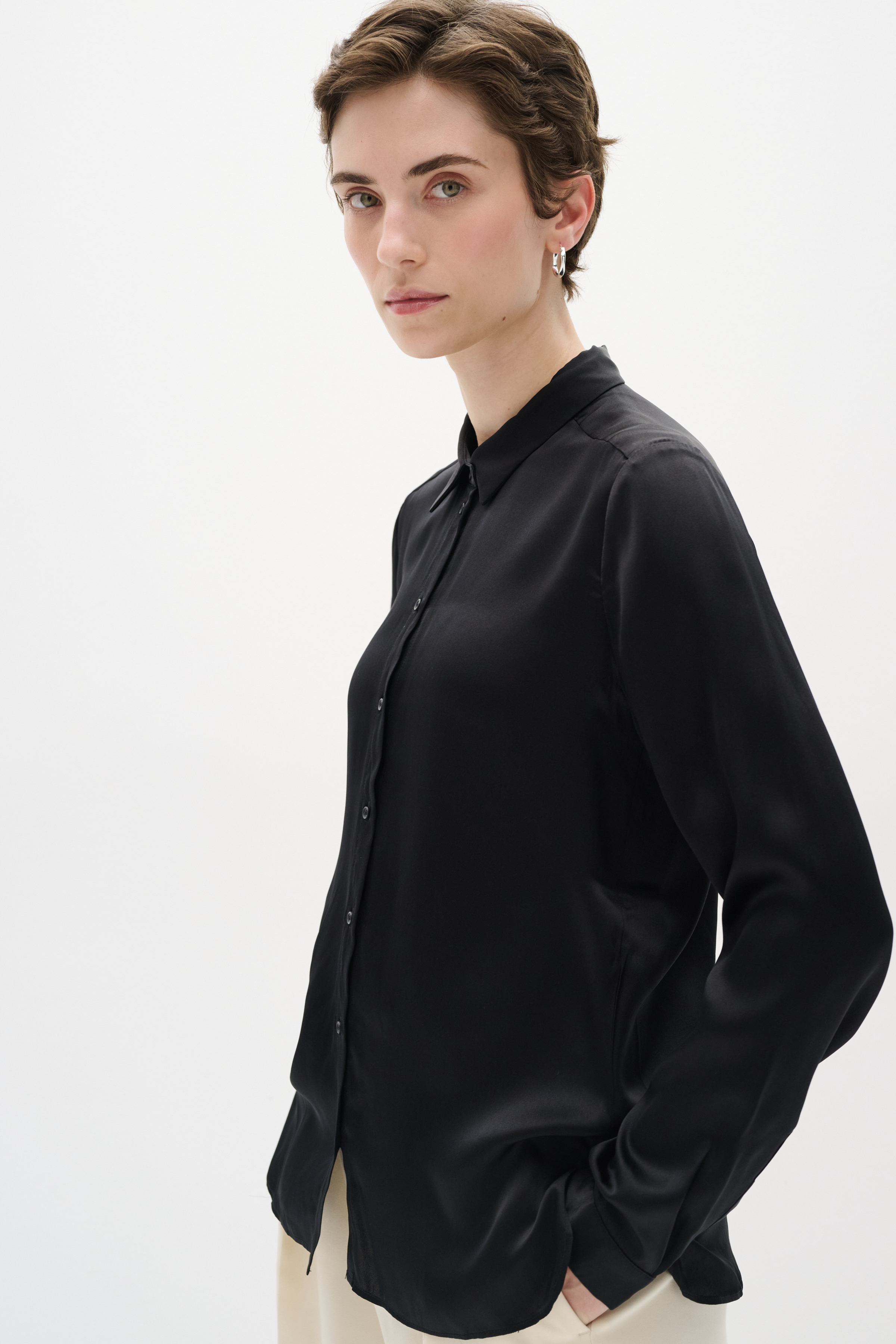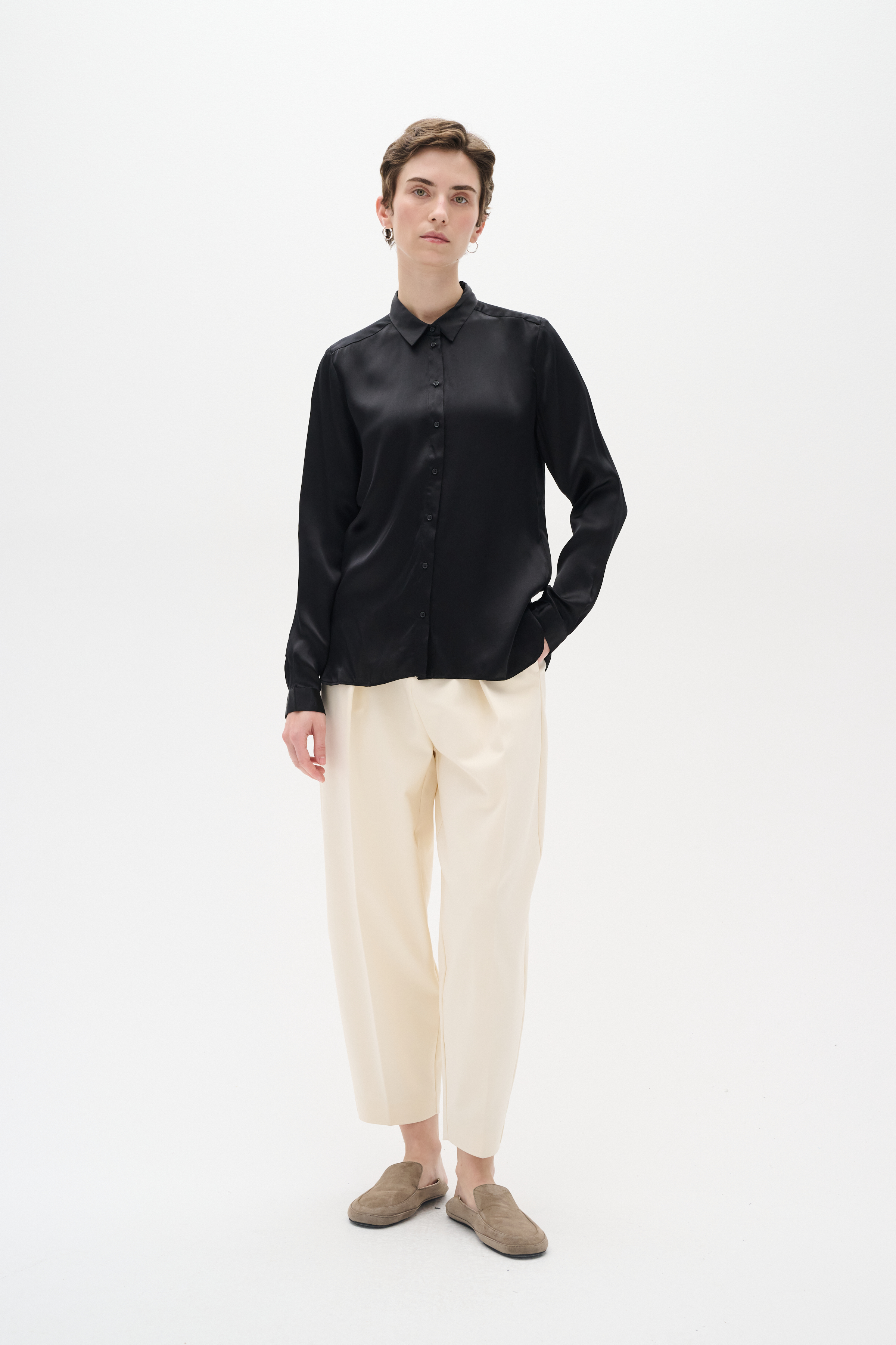 LeonoreIW Silkeskjorte fra InWear er det perfekte valg til dem, der ønsker at tilføje et strejf af elegance og luksus til deres garderobe. Fremstillet i 100% silke, tilbyder denne skjorte en følelse af lethed og komfort mod huden, hvilket gør den ideel til både hverdag og festlige lejligheder. Skjorten har et klassisk langærmet design, der giver et tidløst look, mens den almindelige krave tilføjer et stilrent touch. Den er udstyret med en praktisk knaplukning, der gør det nemt at tage den af og på, samt manchetter med knapper for en justerbar pasform. Med sin almindelige pasform sikrer denne silkeskjorte en afslappet og samtidig sofistikeret stil, der passer til enhver kropsform. LeonoreIW Silkeskjorte fra InWear er en alsidig beklædningsdel, der nemt kan styles op eller ned, afhængig af lejligheden. Uanset om du kombinerer den med et par klassiske bukser eller en elegant nederdel, vil den uden tvivl tilføje et raffineret udtryk til dit outfit.