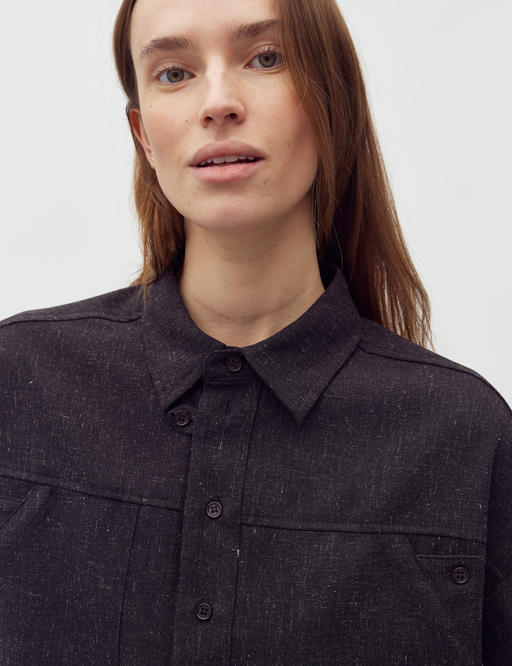 Lukningen med knapper sikrer en nem og personlig justering, mens den løse pasform giver en afslappet følelse, der gør den perfekt til både hverdagsbrug og mere formelle anledninger. Levya-M skjorten fra mbyM er et must-have for dig, der ønsker en kombination af moderne design og klassiske elementer. Uanset om den bæres alene eller lag-på-lag, tilbyder denne skjorte en fleksibel stil, der passer til alle årstider og lejligheder.