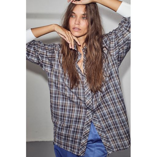 Loose Check Skjorte, Blue, XL