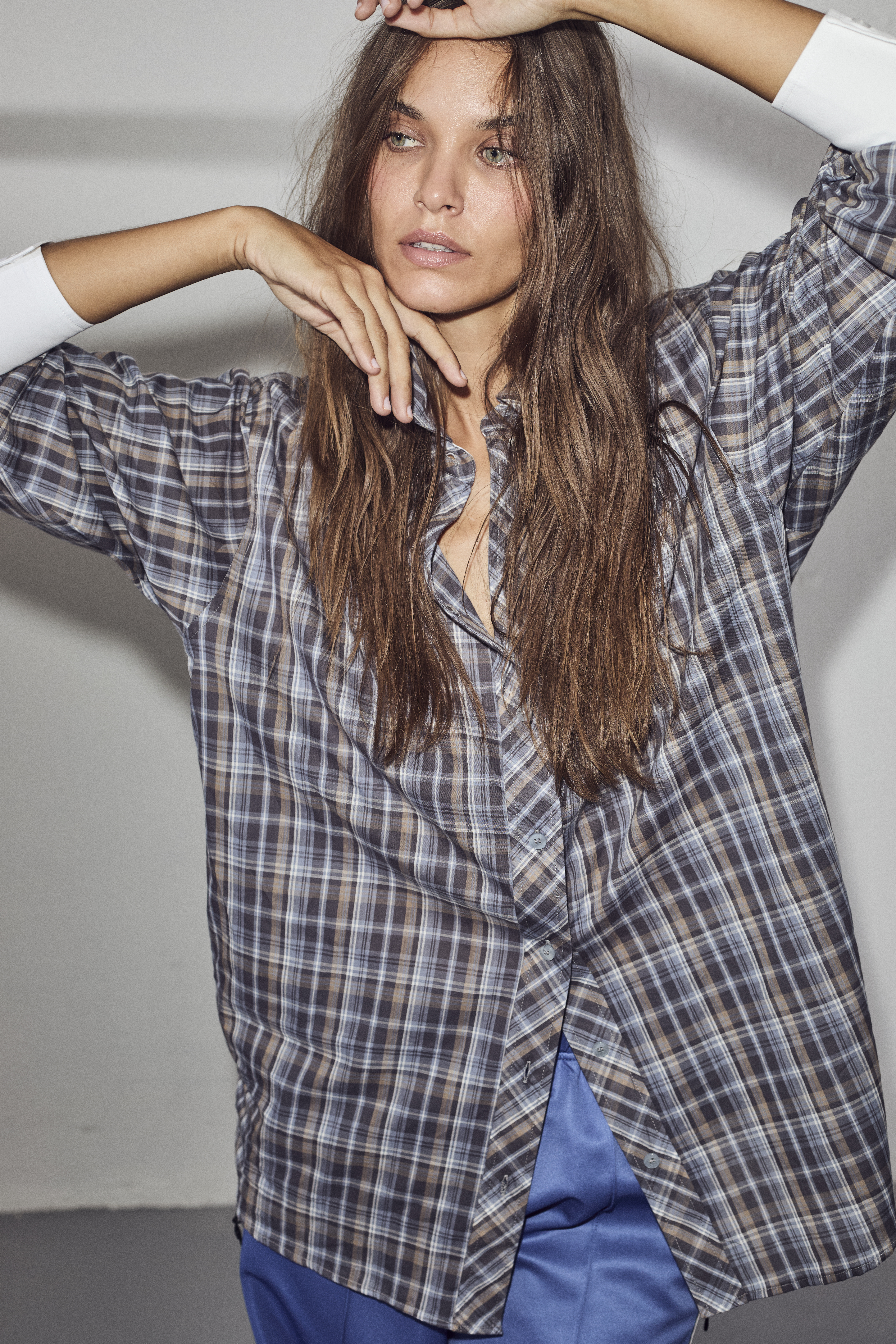 Loose Check Skjorte, Blue, XL