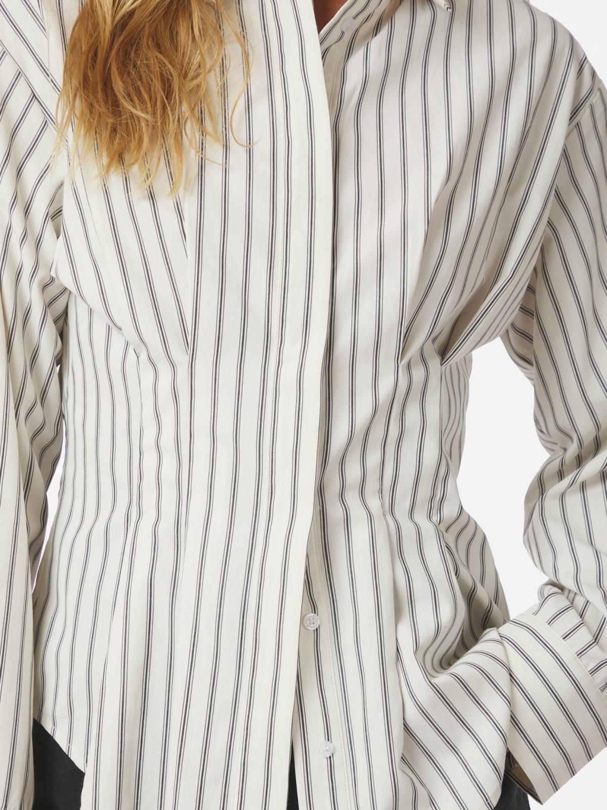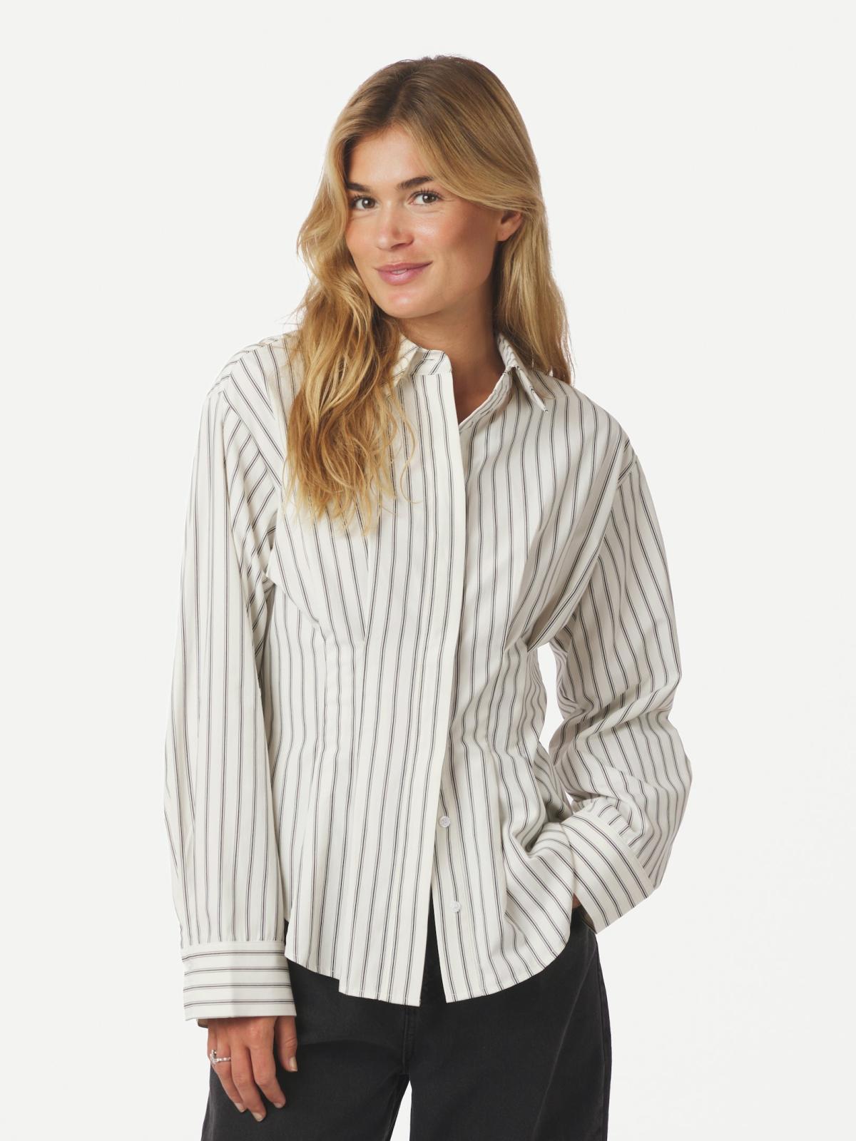 En af de mest fremtrædende detaljer ved Lytra Stripe Skjorten er dens skjulte knaplukning, der skaber et strømlinet udtryk og sikrer et elegant udseende. De subtile striber tilføjer en visuel dybde og giver skjorten en sofistikeret karakter, der gør den til en alsidig tilføjelse til enhver garderobe.