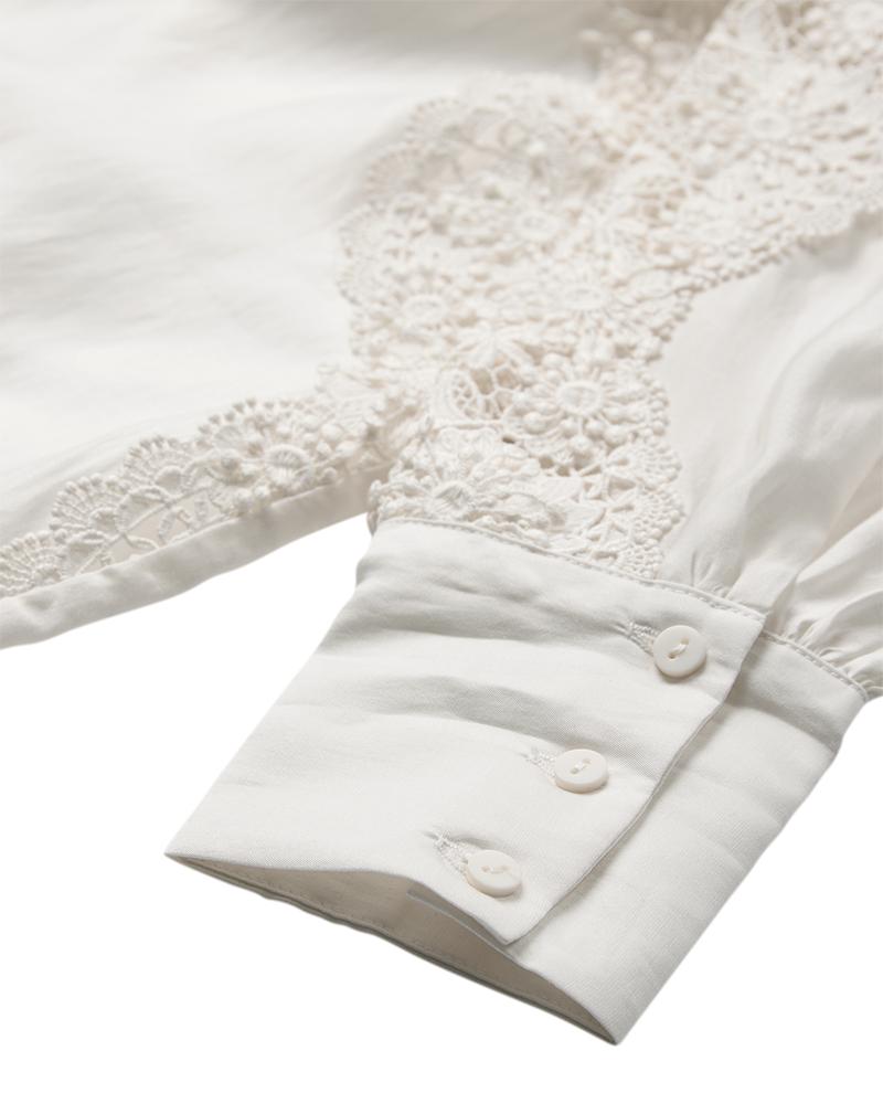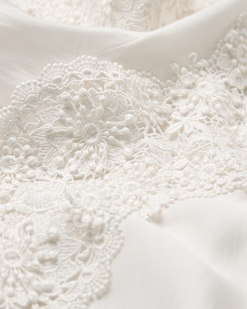 - Broderede detaljer på ærmer og bryst