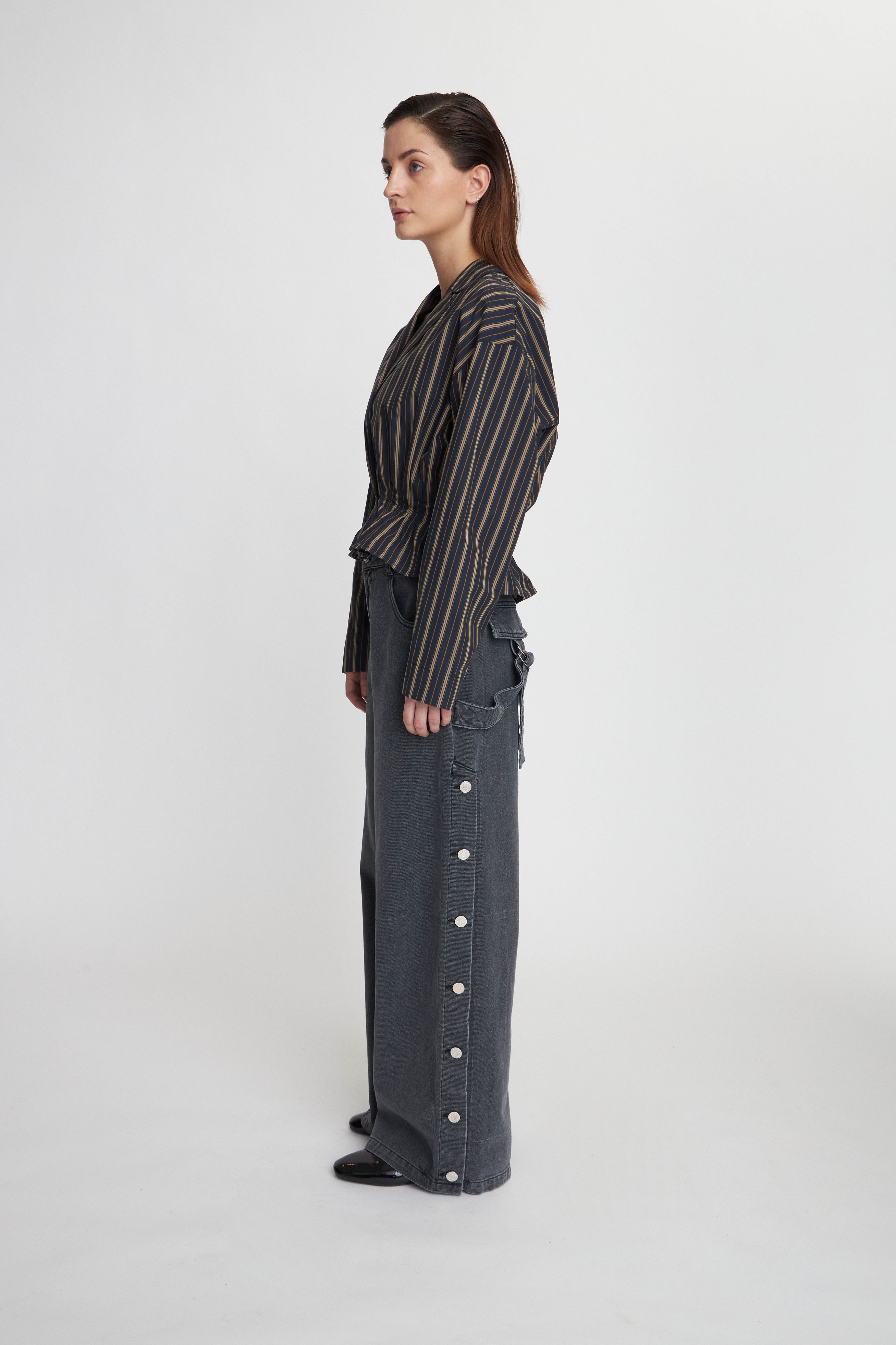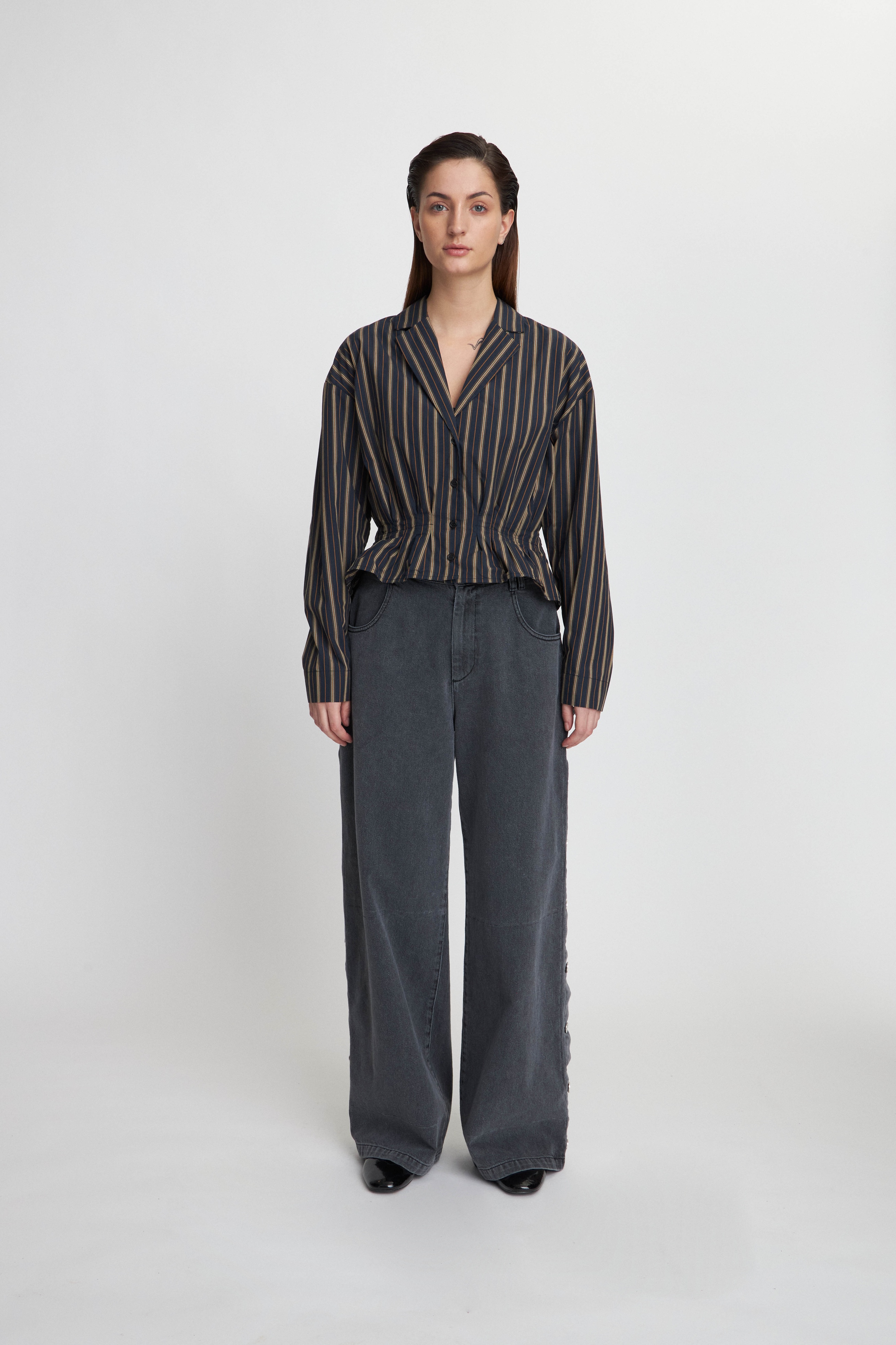 Plisseret Skjorte, Dark Striped, 42