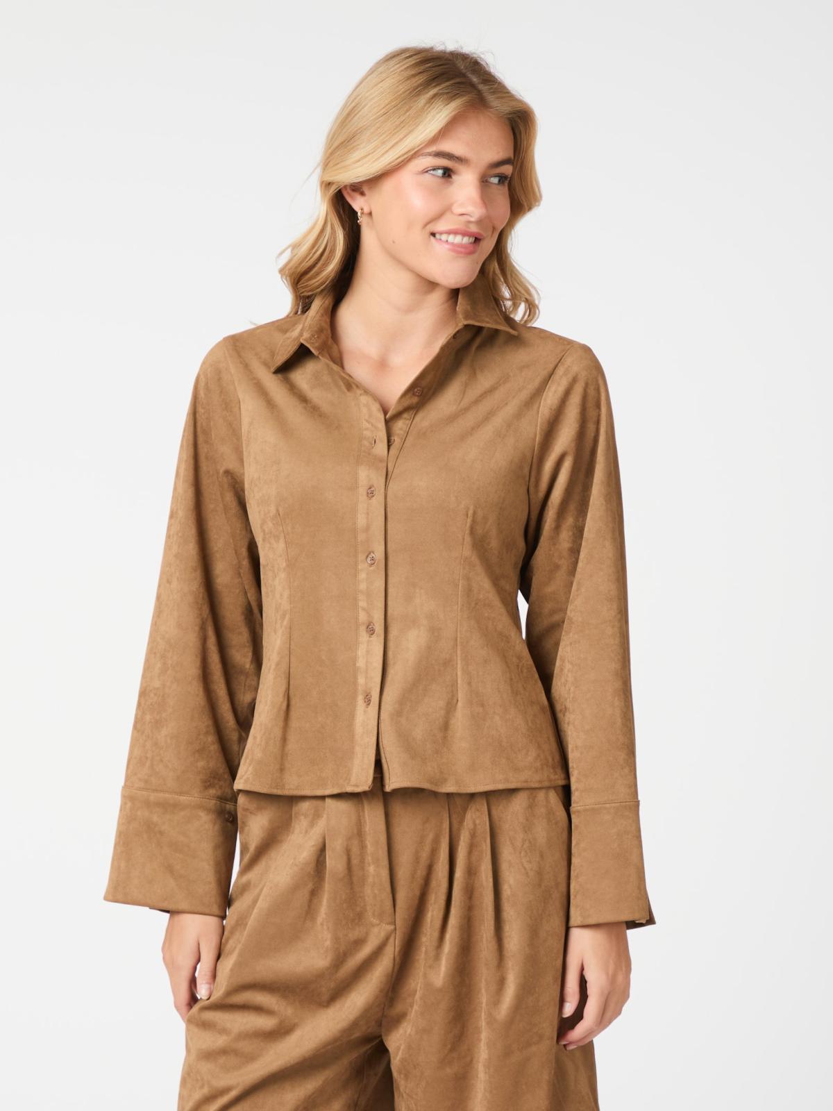 Rosa Faux Suede Skjorte, Cognac, 36