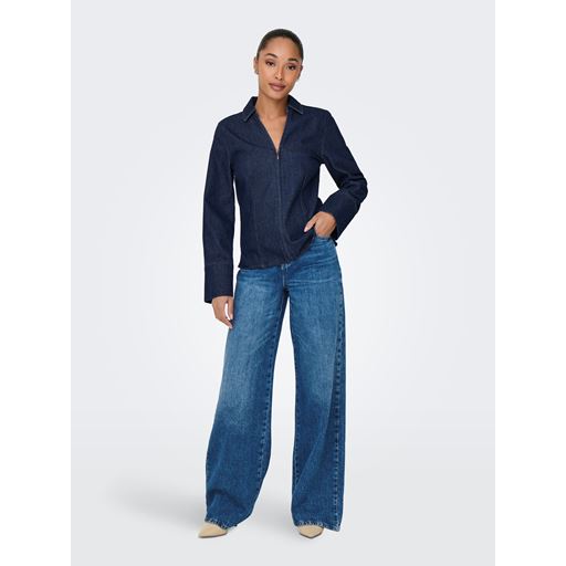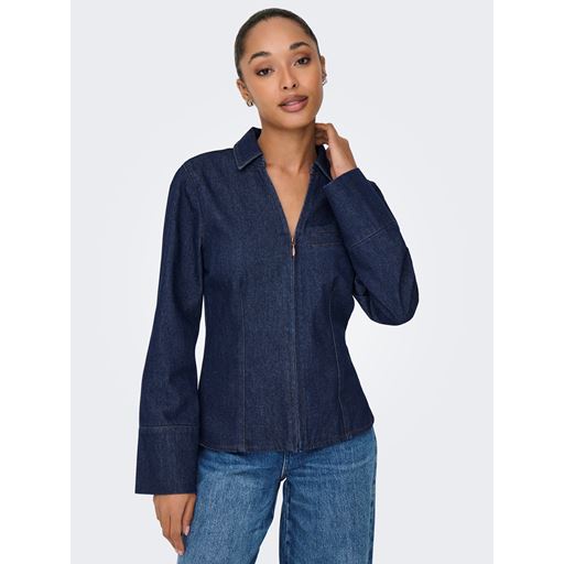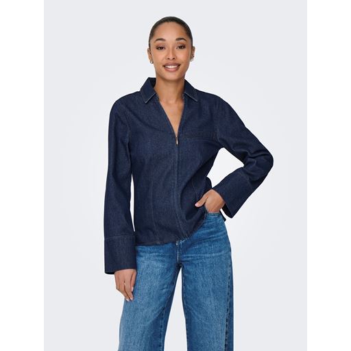 Sally Zip Denimskjorte, Dark Blue Denim, XS