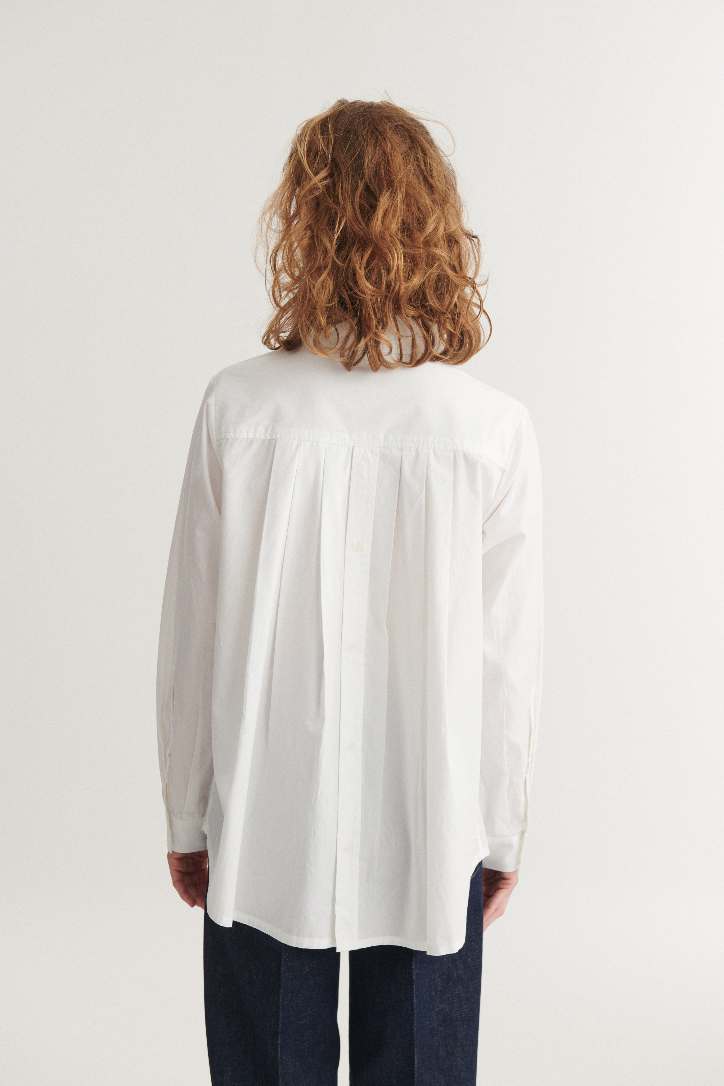 - Plisseringer og knapdetalje på ryggen