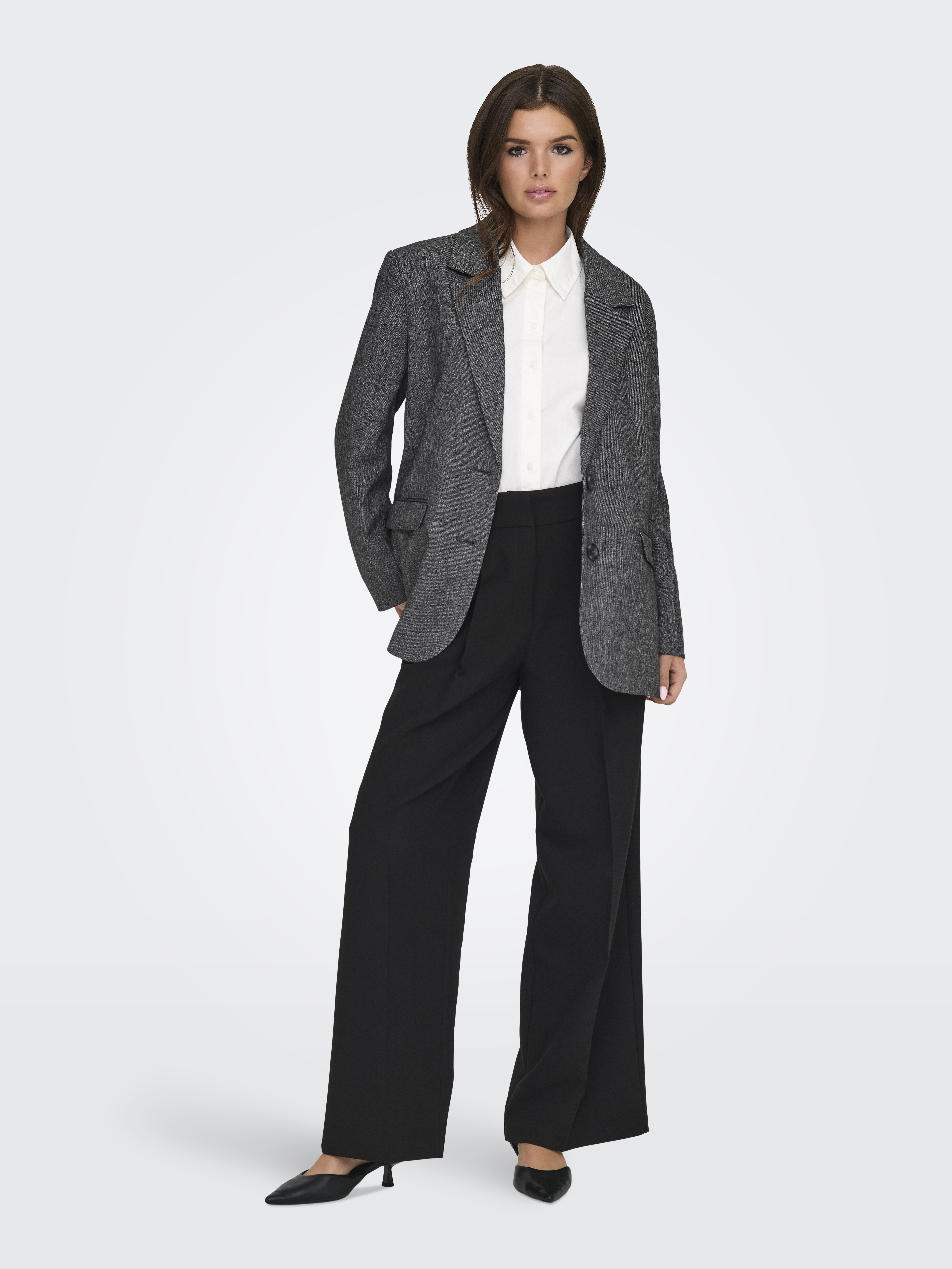 JDY præsenterer Cille Wide Bukser, som er det perfekte valg for dig, der søger både komfort og stil i din garderobe. Disse bukser er designet til at give et moderne og elegant look med deres højtaljede snit, der fremhæver taljen på smukkeste vis. Det brede ben-design skaber et flydende og sofistikeret udtryk, der både er trendy og flatterende. Bukserne er udstyret med en praktisk hægte- og lynlåslukning, som sikrer en nem og sikker pasform. De kommer med lommer, der giver dig mulighed for hurtigt at opbevare småting, mens bæltestropperne lader dig tilføje et bælte for at fuldende dit look. Cille Wide Bukser fra JDY er en alsidig tilføjelse til enhver garderobe, der kan styles op til formelle begivenheder eller ned til afslappede hverdage.