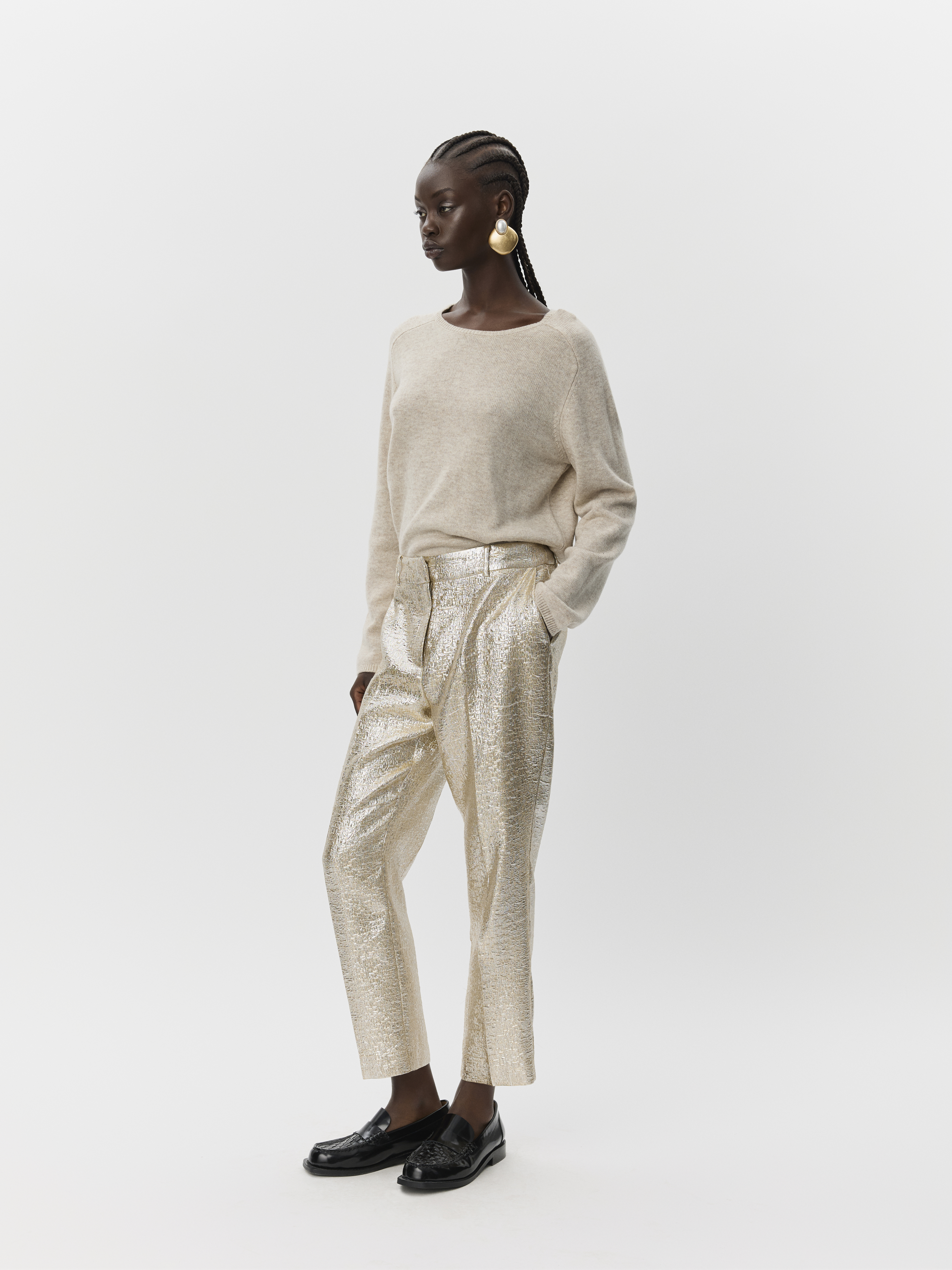 CordeliaSW Bukser fra Sofie Schnoor er et stilfuldt valg til enhver moderne garderobe. Disse bukser er designet med en struktureret overflade, der tilføjer et unikt touch til dit outfit. Den iøjnefaldende metalliske effekt gør dem perfekte til at skabe et subtilt, men elegant look, der kan bruges både til hverdag og festlige lejligheder.