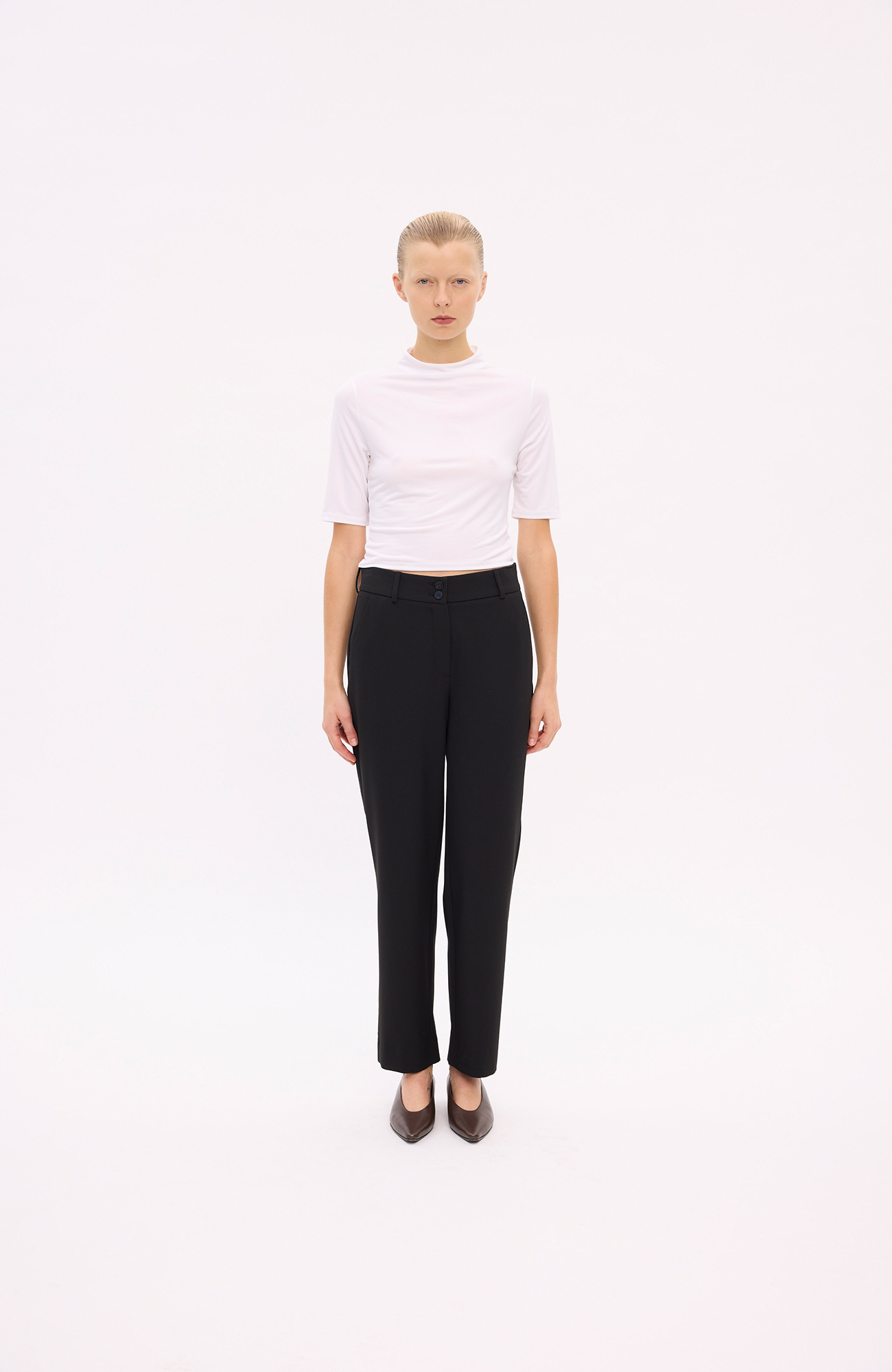 DaphneFV 285 bukser fra Five Units kombinerer stil og komfort på en elegant måde. Disse bukser er designet med en straight fit, der sikrer et moderne og klassisk look, som er perfekt til både hverdag og mere formelle lejligheder. Det højtaljede design fremhæver taljen på en flatterende måde, hvilket gør dem til et ideelt valg for dem, der ønsker at skabe en slank og sofistikeret silhuet.