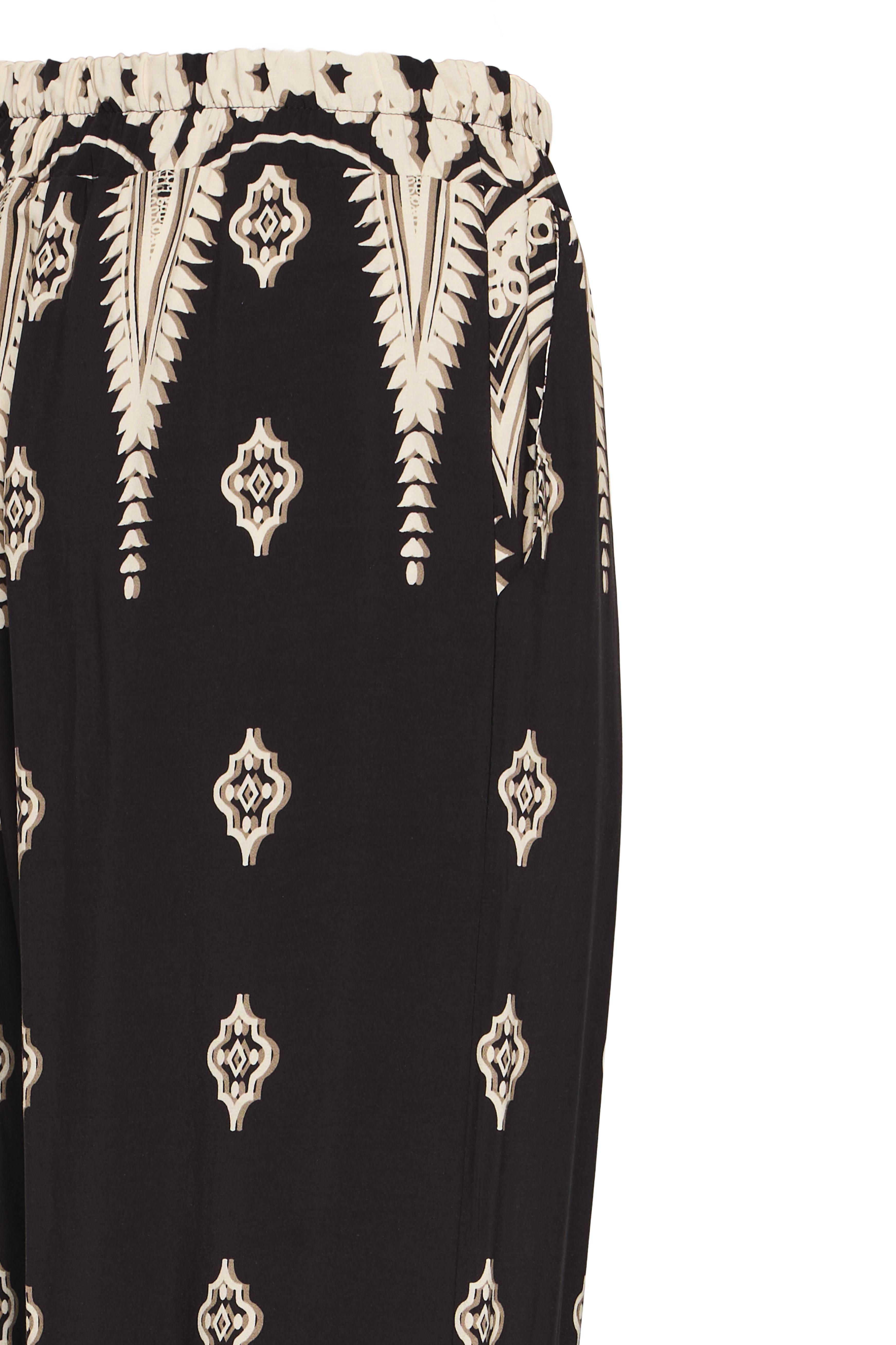 Bukserne er udstyret med elastik i taljen, som gør det nemt at tage dem af og på samt sørger for en personlig og komfortabel pasform. Med praktiske lommer i siden er der plads til at opbevare små nødvendigheder som nøgler eller telefon. Bukserne er også fremhævet med et print, der tilfører et moderne og stilfuldt element til dit outfit. Uanset om du styler dem til en casual dag eller til en mere formel lejlighed, vil Edene bukserne give dig et alsidigt og trendy look.